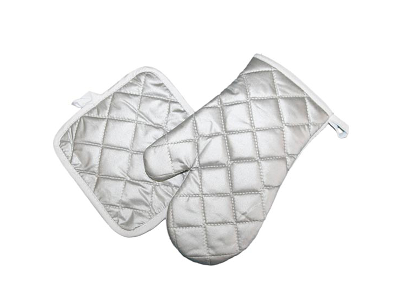 Nadrukowana jest strona, natomiast srebrna pikowana izoluje ciepło. Akcesoria posiadają pętelki dzięki czemu można je przywiesić.