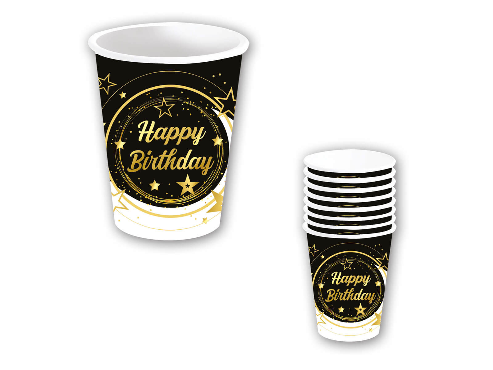 Kubeczki papierowe Happy Birthday czarne - 240 ml - 6 szt.