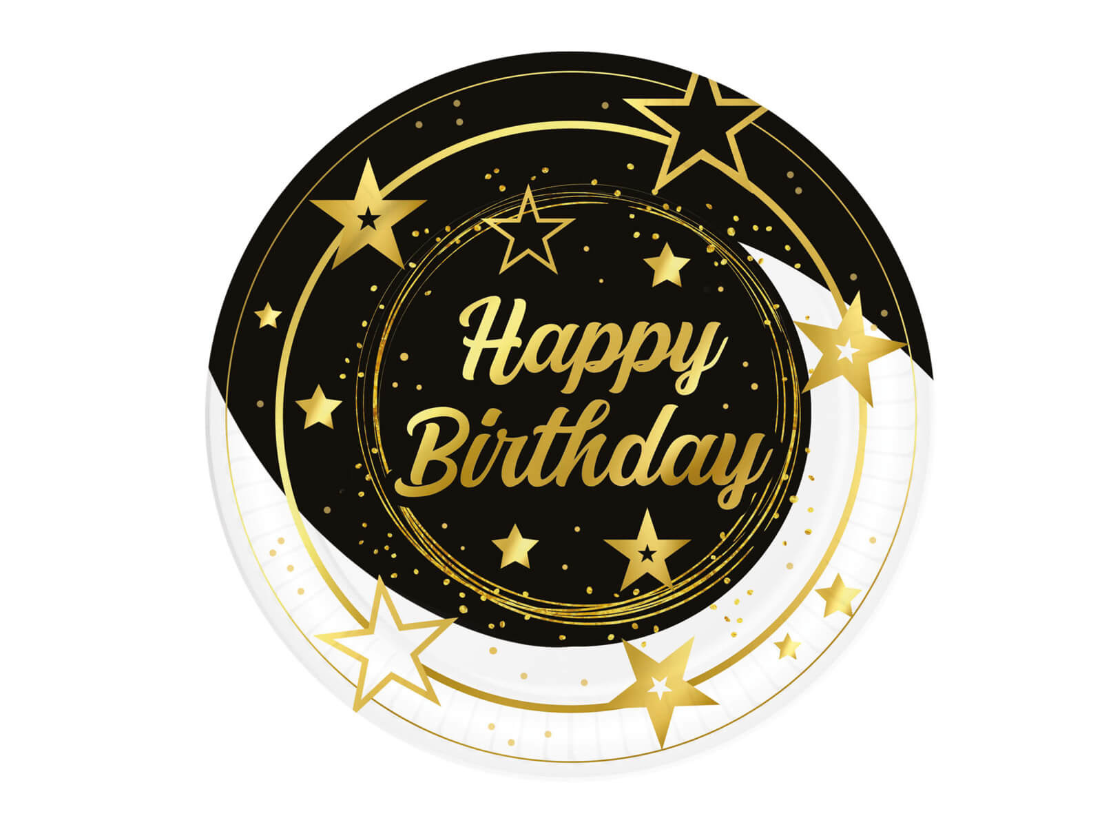Talerzyki papierowe na urodziny Happy Birthday czarne - 23 cm - 6 szt.