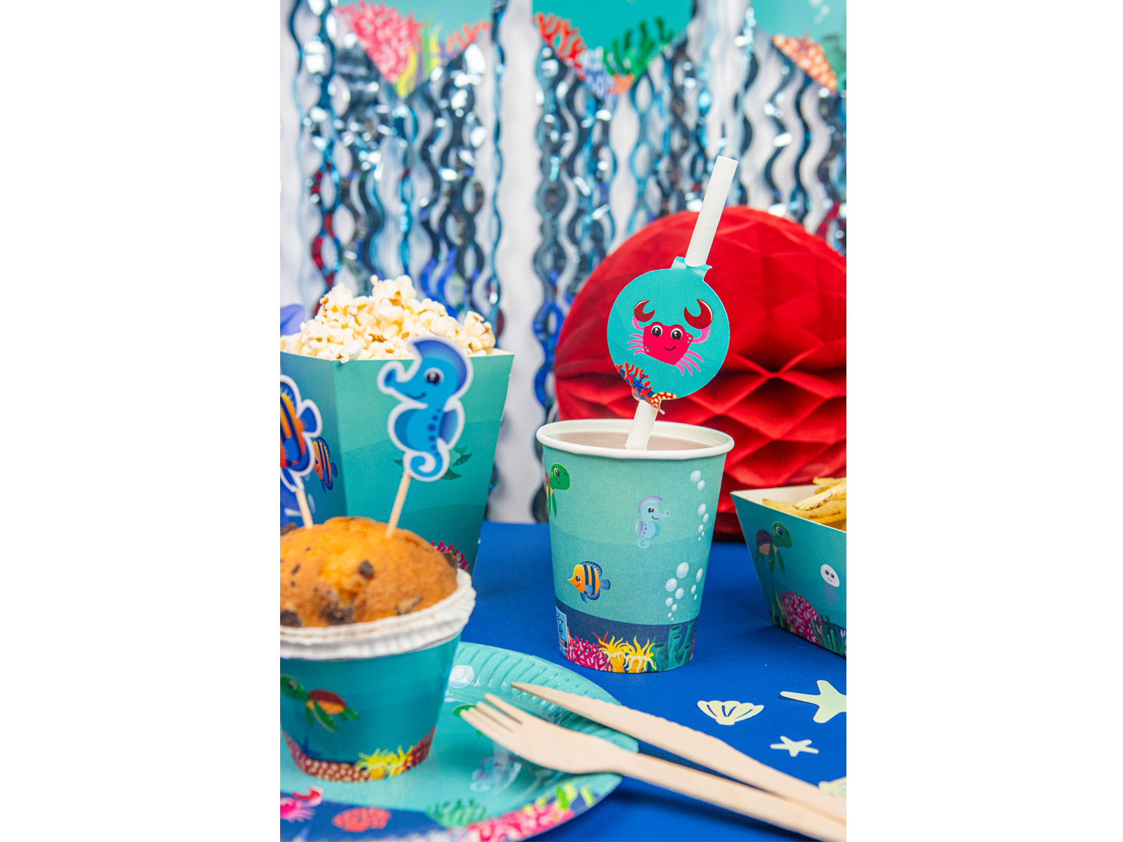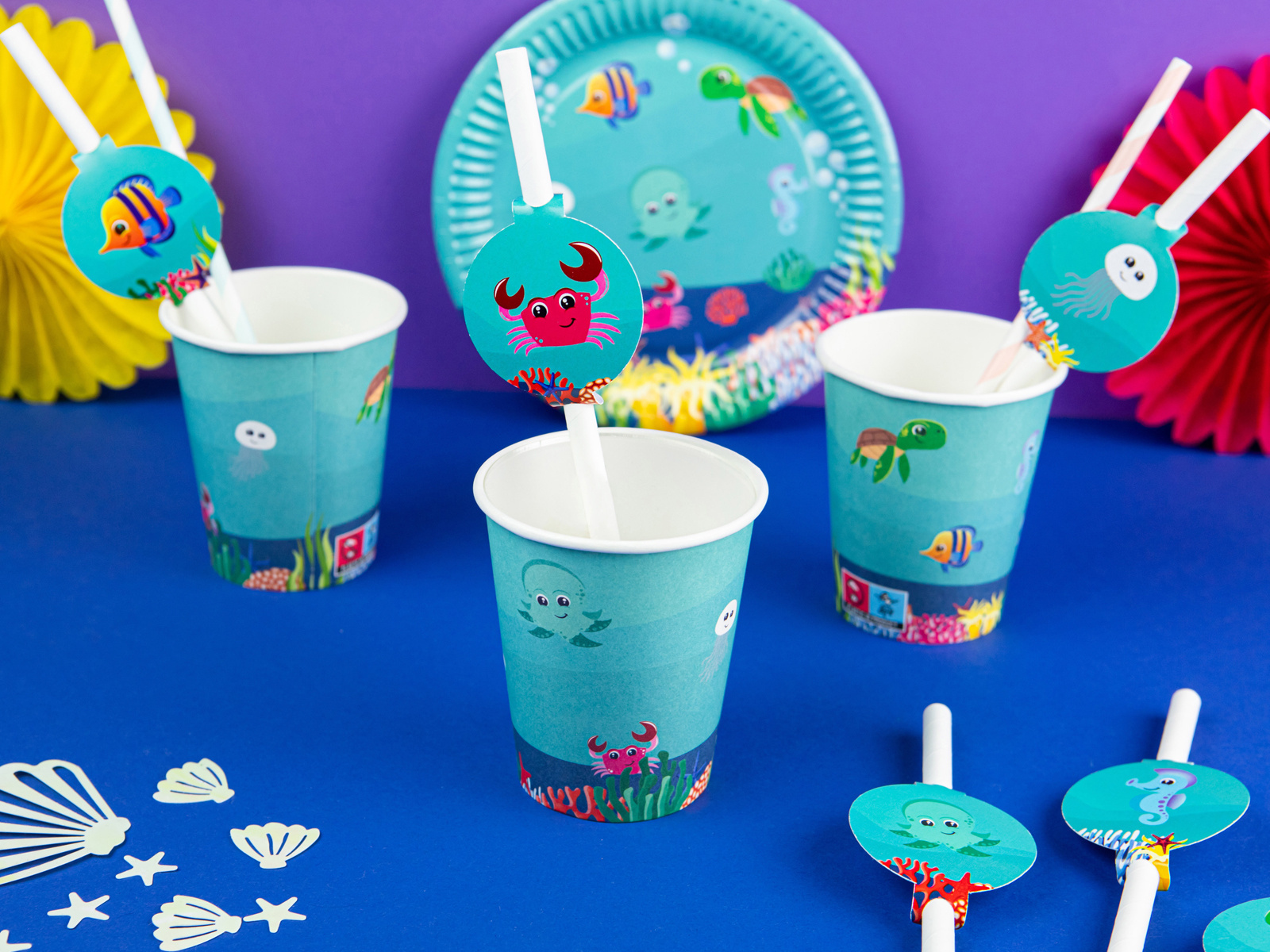 Zachwyć swojego malucha w jego wyjątkowym dniu dzięki kubkom urodzinowym Podwodny Świat! Te kubki o pojemności 250 ml są częścią eleganckiego zestawu ozdobionego jasnymi i kolorowymi podwodnymi scenami. W opakowaniu znajduje się 6 kubków, z których każdy został wykonany z wysokiej jakości materiałów, dzięki czemu Twoje dzieci będą mogły pić napoje w dobrym stylu jeszcze długo po zakończeniu imprezy. Idealnie nadają się na imprezy na świeżym powietrzu i są całkowicie bezpieczne dla gorących i zimnych napojów. Spraw, by Twoje dziecko poczuło się jak gwiazda bez względu na okazję z kubkami urodzinowymi Podwodny Świat!