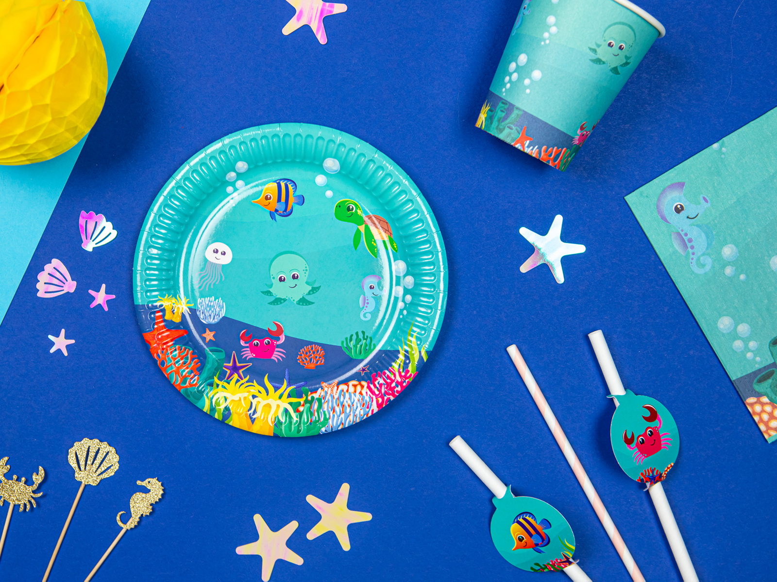 Talerzyki papierowe na urodziny Podwodny Świat - 18 cm - 6 szt.