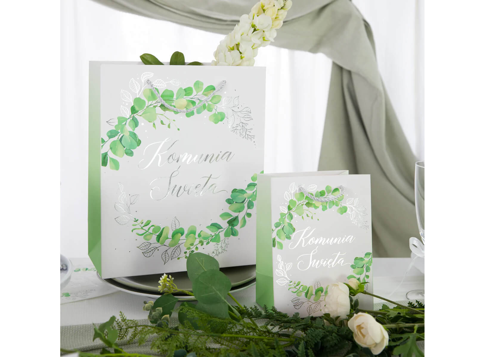 Torebka prezentowa na I Komunię Świętą z eukaliptusem mała - 1 szt.