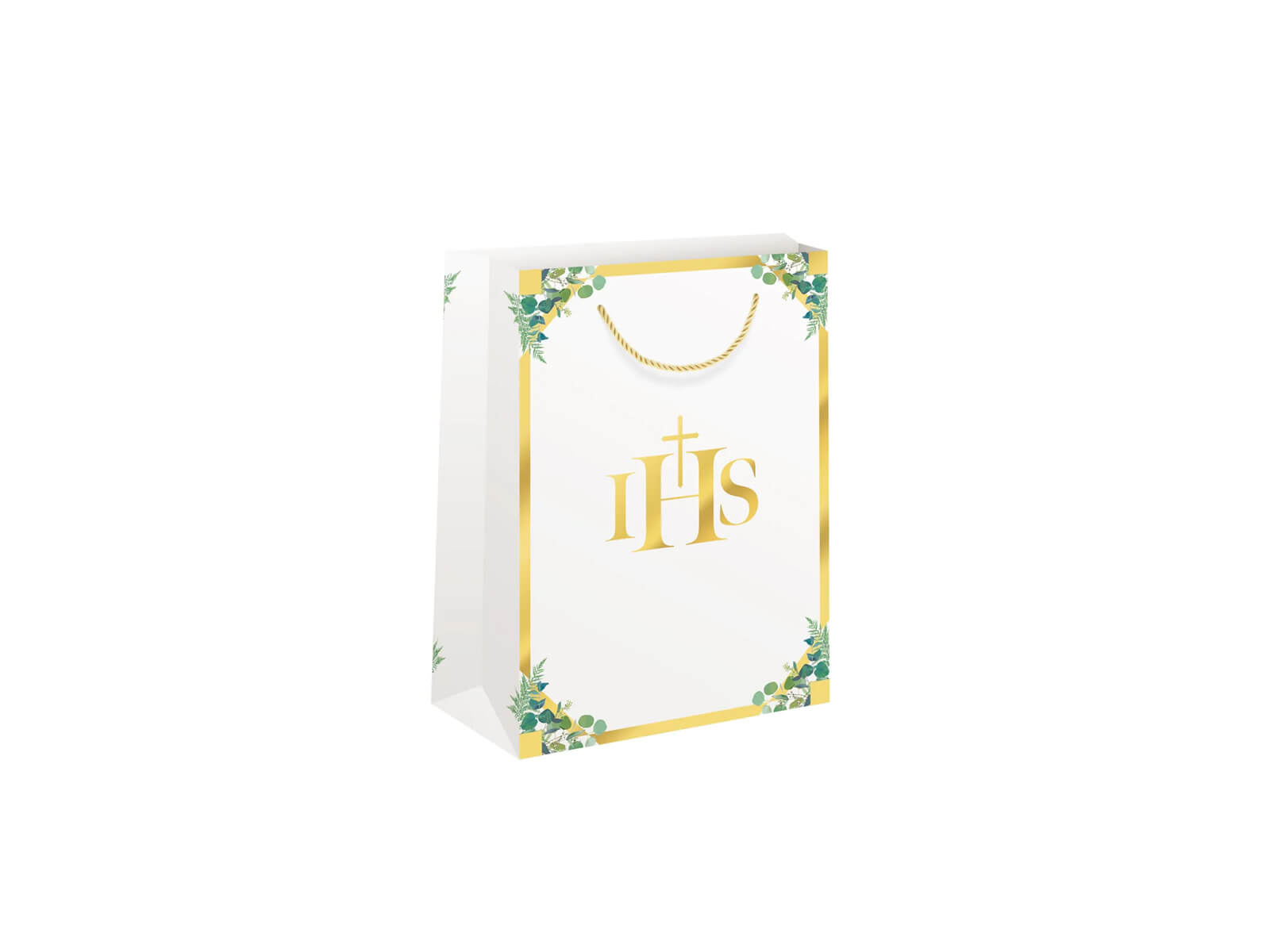 Torebka prezentowa na I Komunię Świętą z eukaliptusem mała - 1 szt.