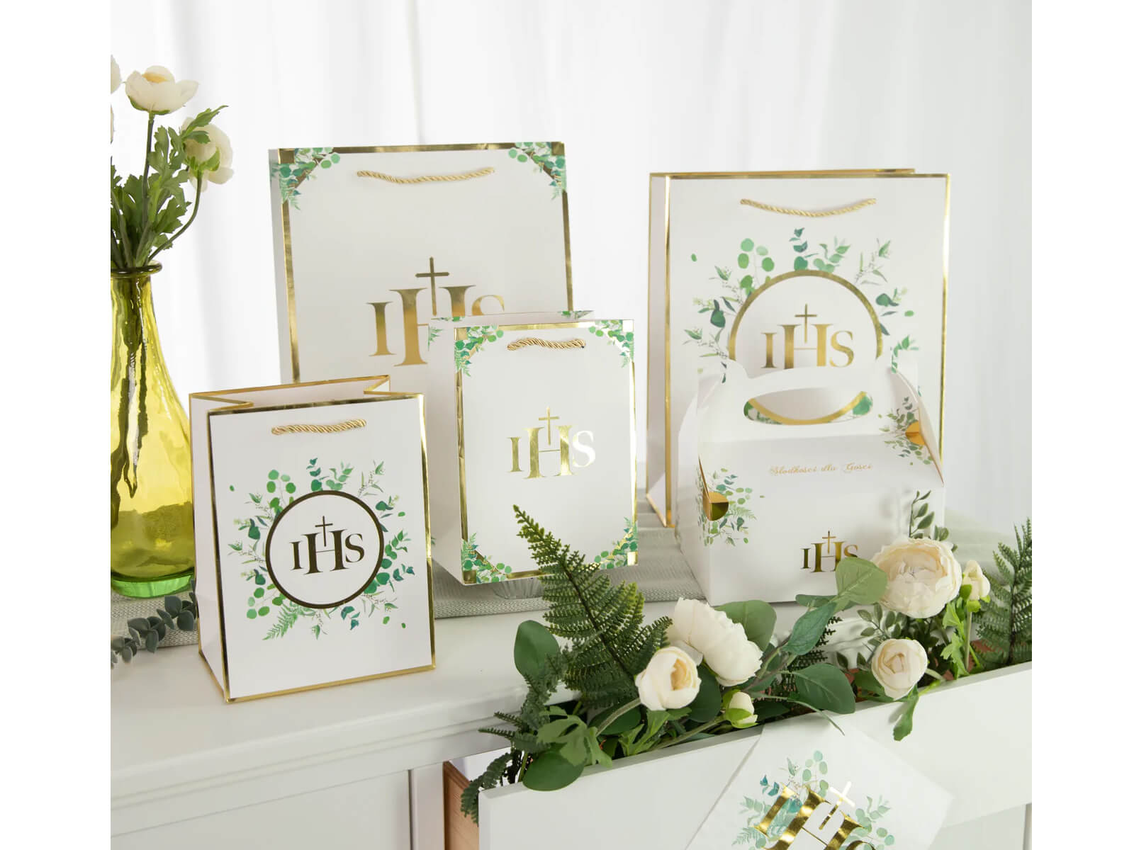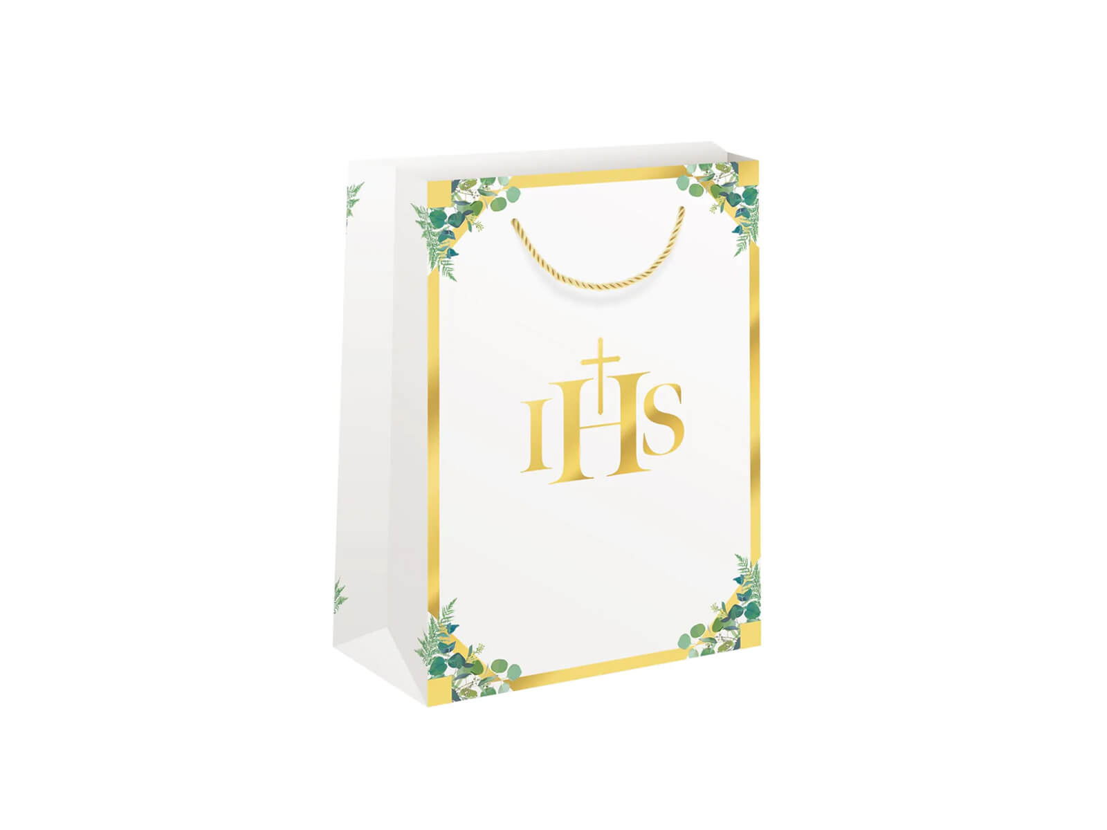 Torebka prezentowa na I Komunię Świętą z eukaliptusem duża - 1 szt.