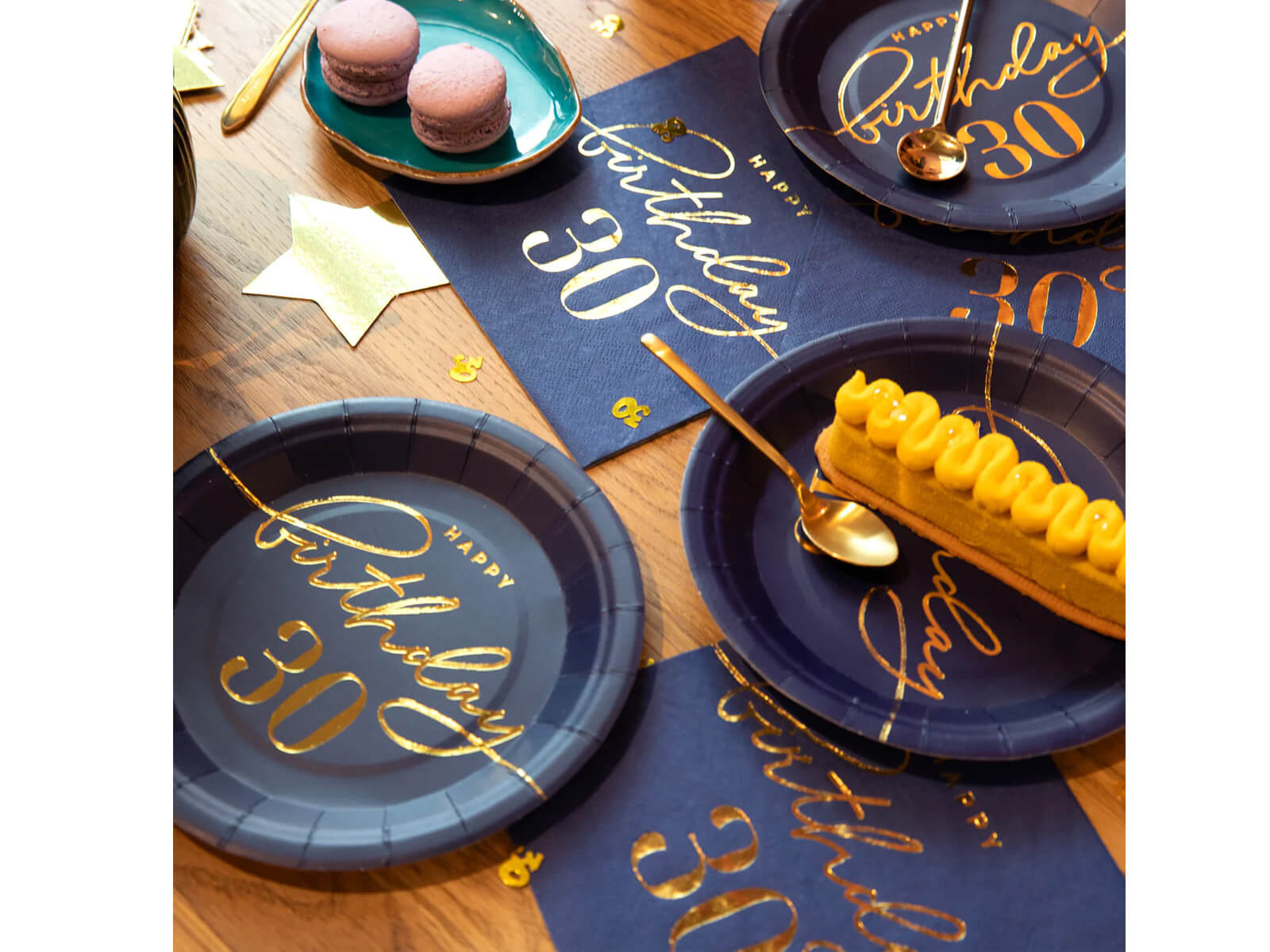 Talerzyki papierowe na trzydzieste urodziny granatowe - 18 cm - 6 szt.