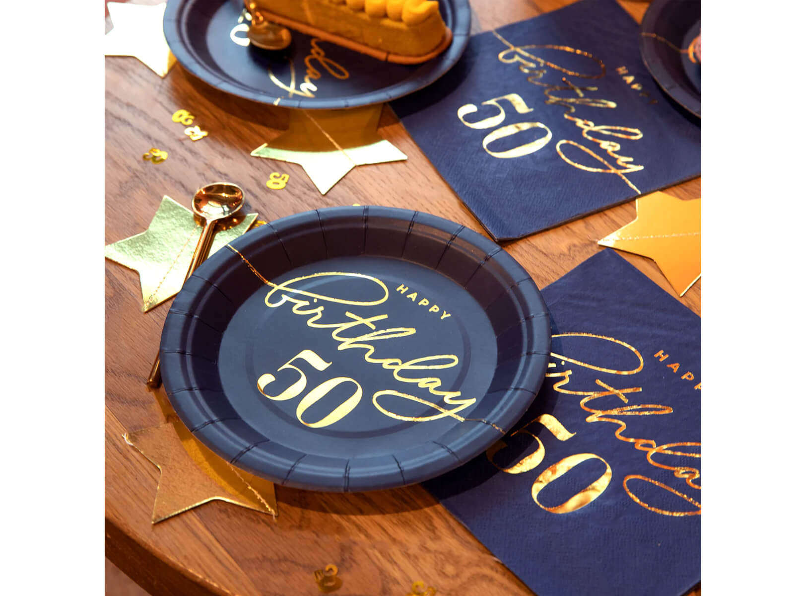 Talerzyki papierowe na pięćdziesiąte urodziny granatowe - 18 cm - 6 szt.