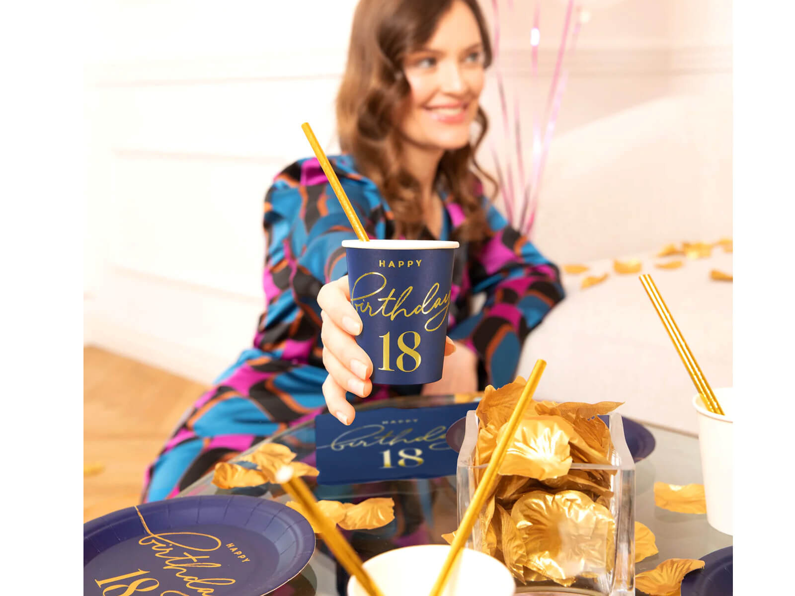 Kubeczki papierowe na osiemnaste urodziny granatowe - 220 ml - 6 szt.