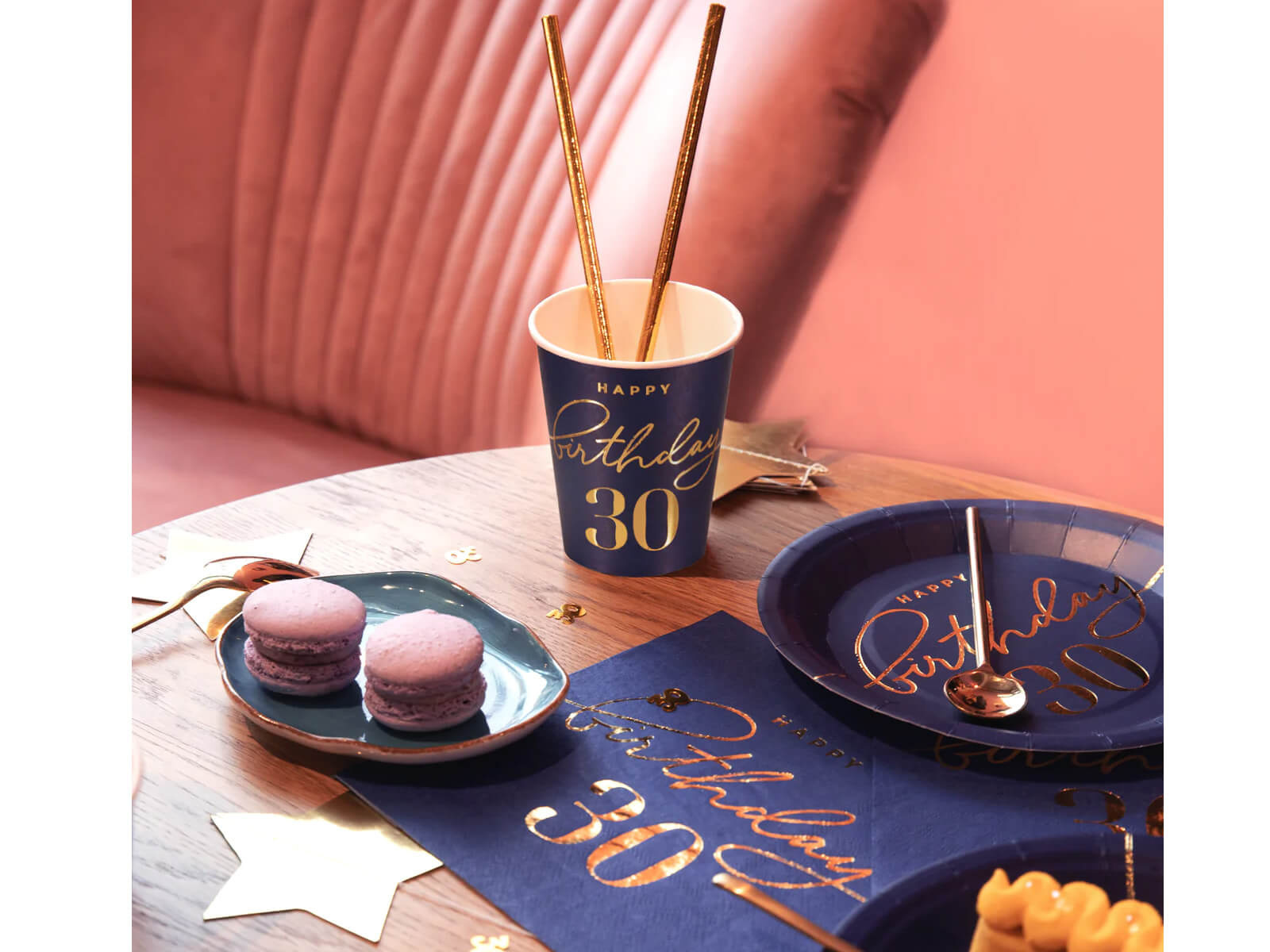 Kubeczki papierowe na trzydzieste urodziny granatowe - 220 ml - 6 szt.