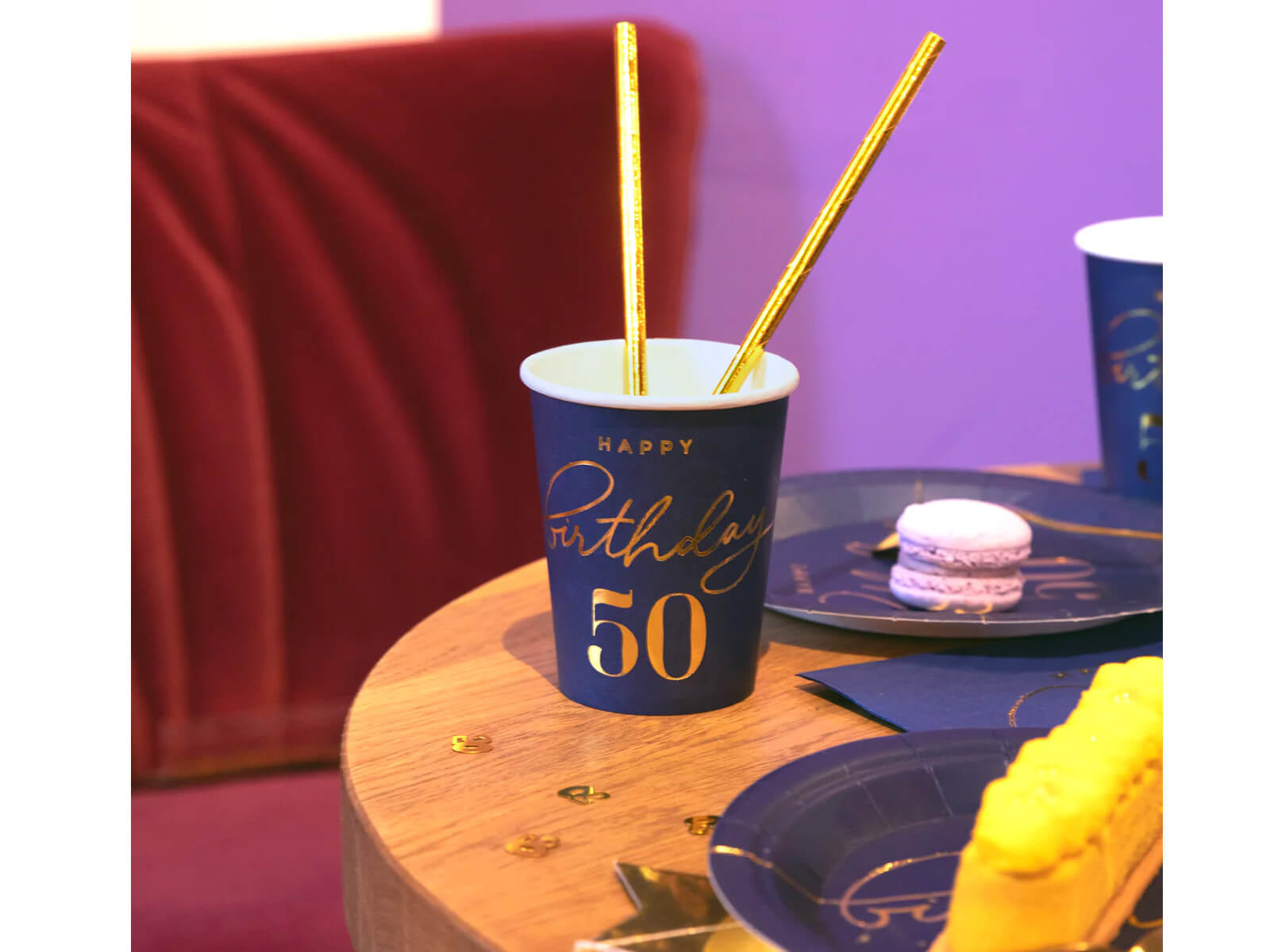 Kubeczki papierowe na pięćdziesiąte urodziny granatowe - 220 ml - 6 szt.