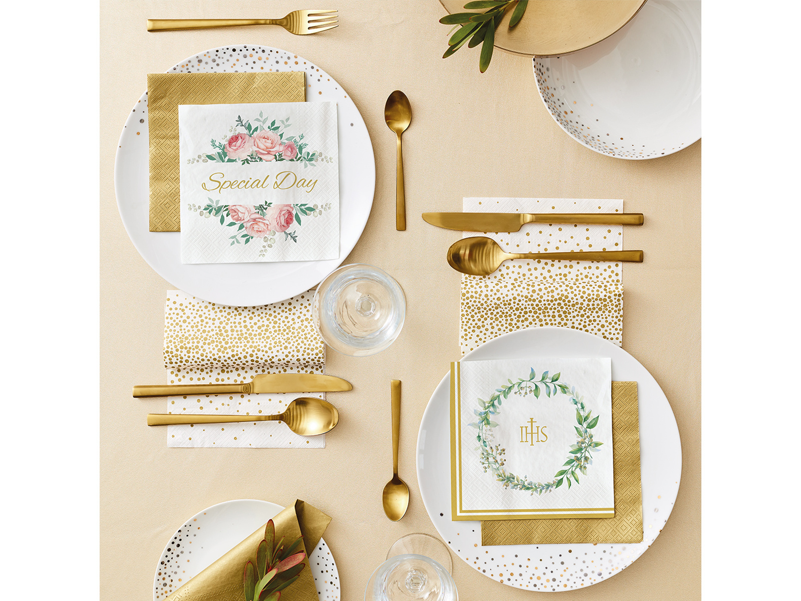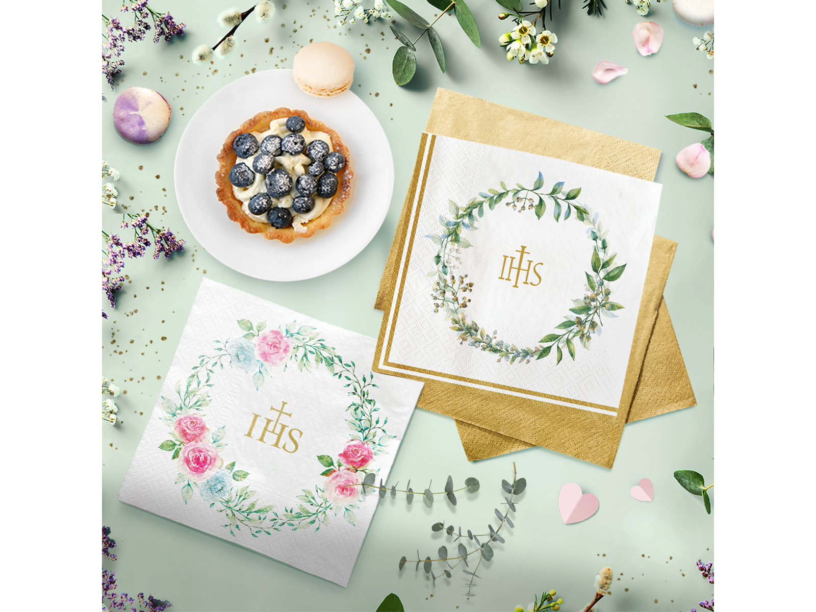 Serwetki komunijne IHS z listkami - 33 cm - 20 szt.