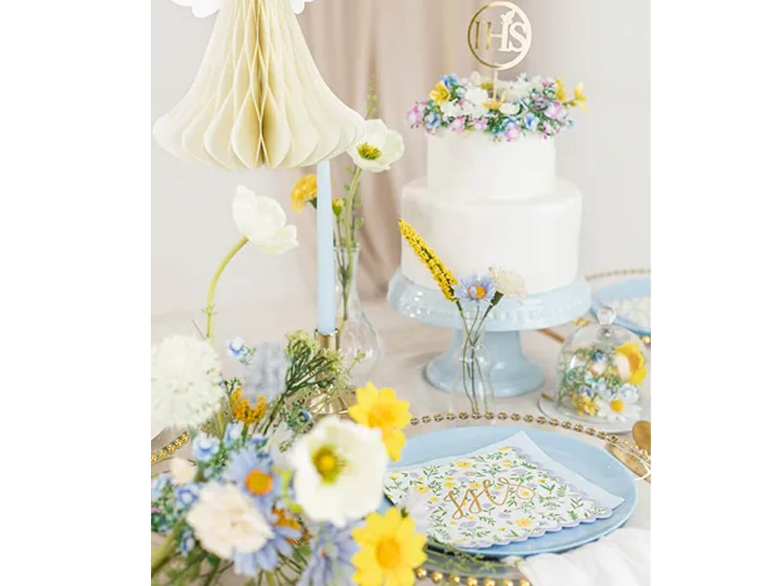 Serwetki komunijne z nadrukiem kwiatów IHS - 33 cm - 20 szt