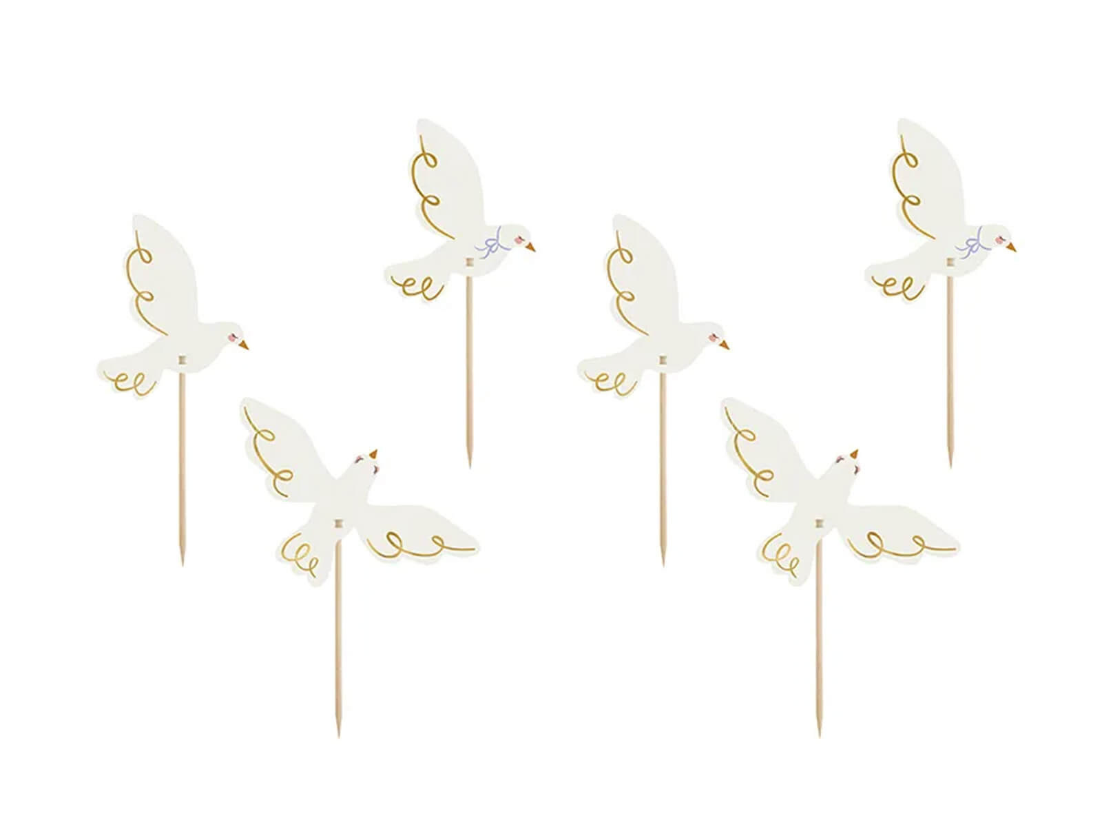 Pikery na babeczki Gołąbki na I Komunię Świętą - 6 szt.