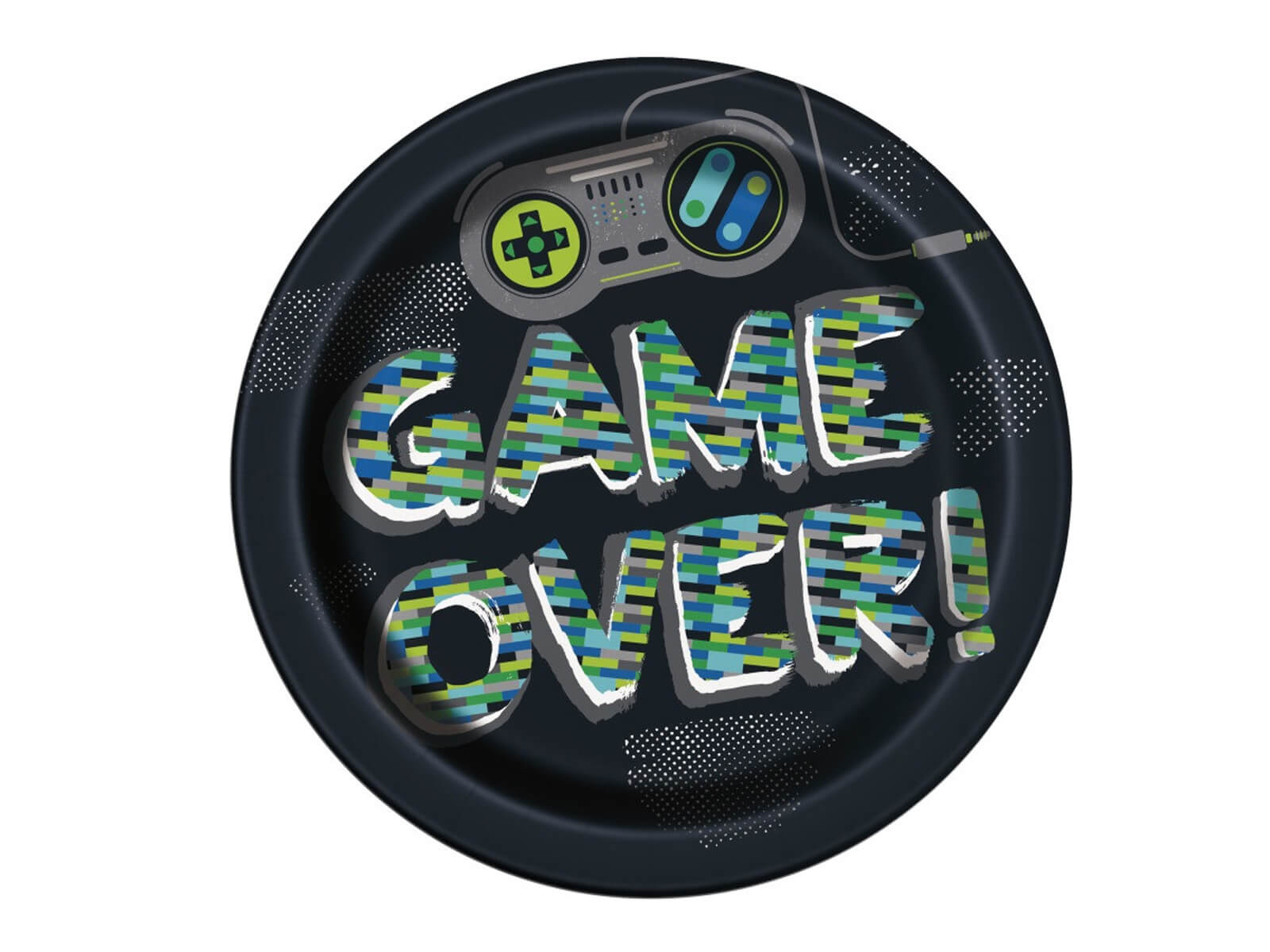 Talerzyki papierowe na urodziny Game over! - 23 cm - 8 szt.