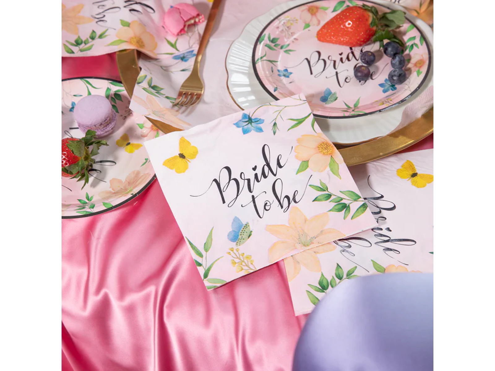 Talerzyki papierowe na Wieczór panieński w kwiaty Bride to be - 18 cm - 6 szt.