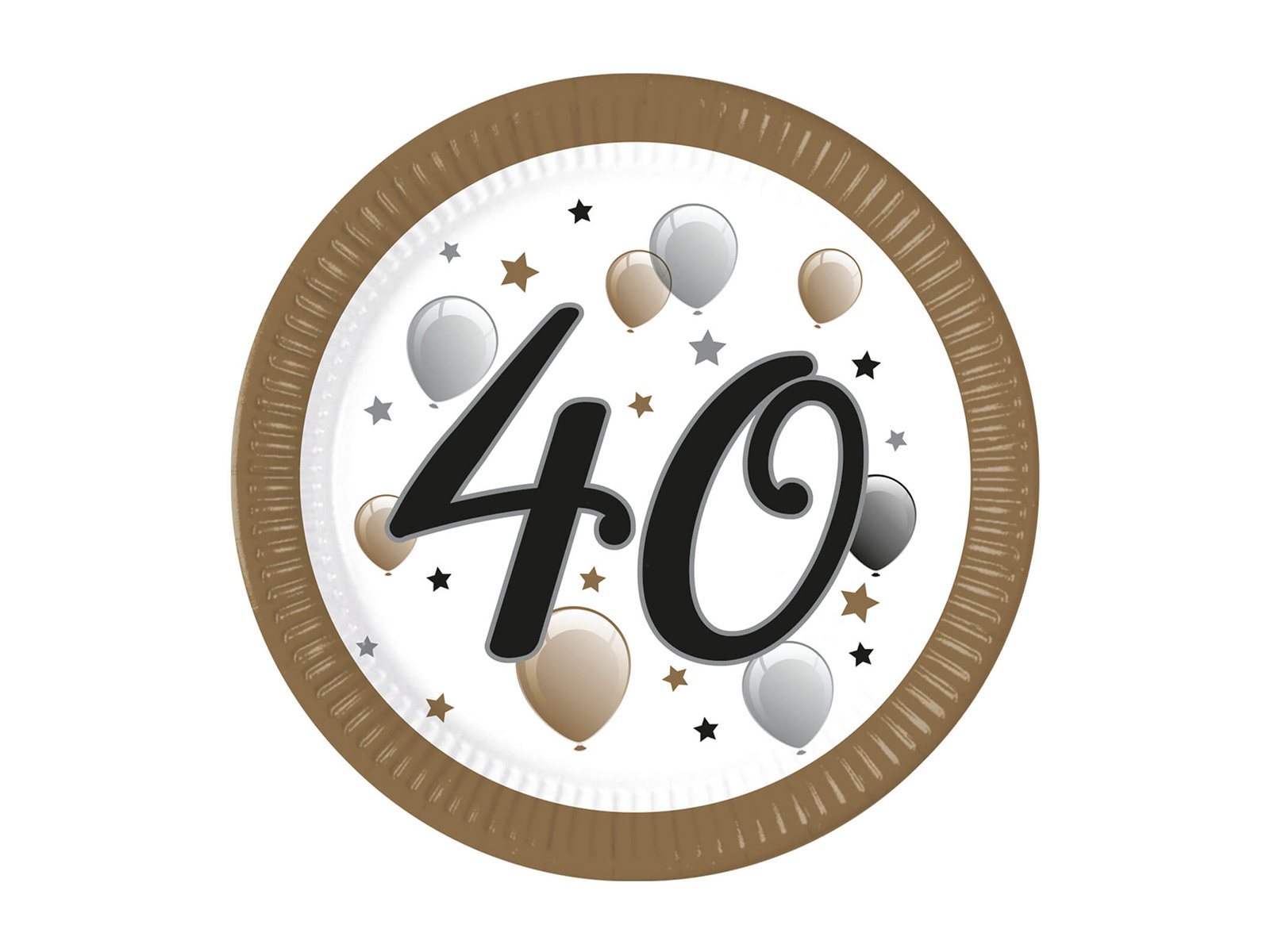 Talerzyki papierowe na czterdzieste urodziny - 23 cm - 8 szt.