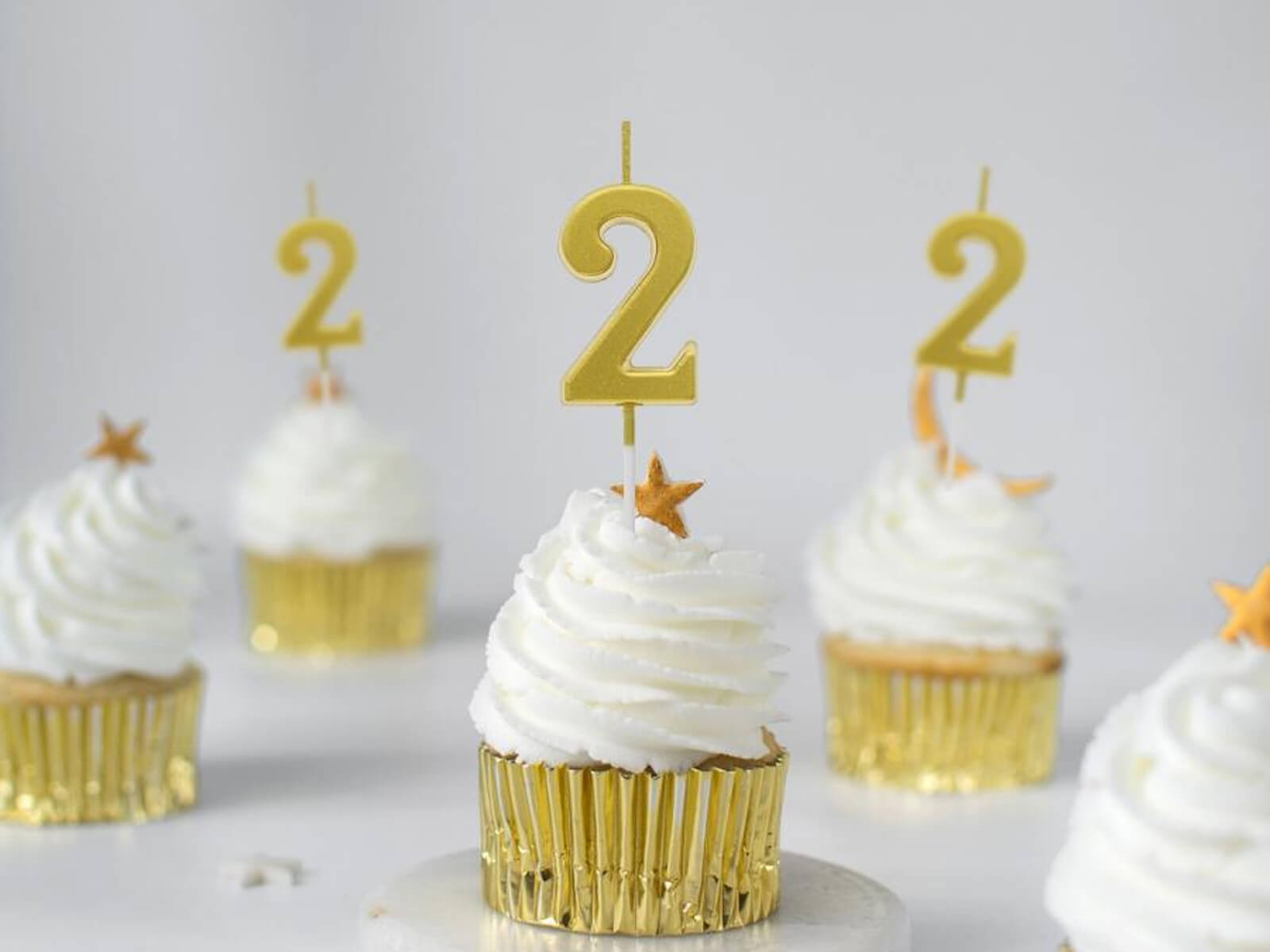 Świeczka cyferka metaliczna złota - 2 - dwa