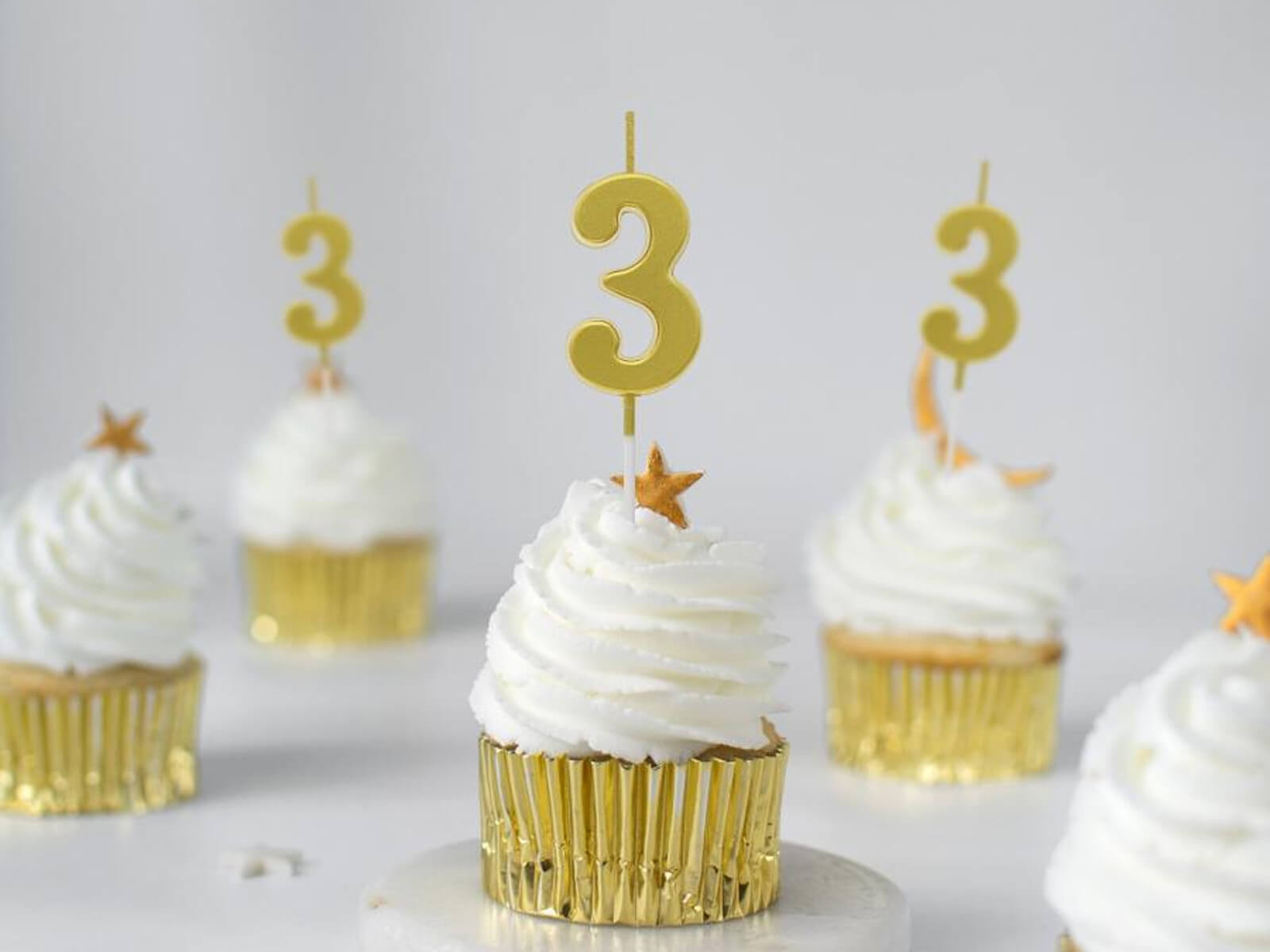 Świeczka cyferka metaliczna złota - 3 - trzy