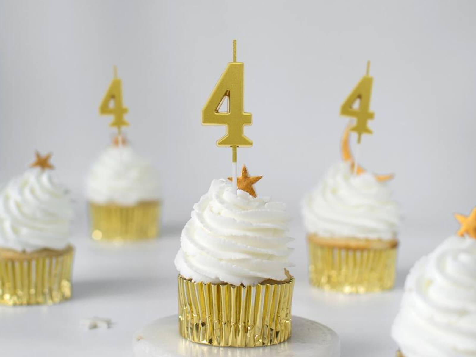 Świeczka cyferka metaliczna złota - 4 - cztery