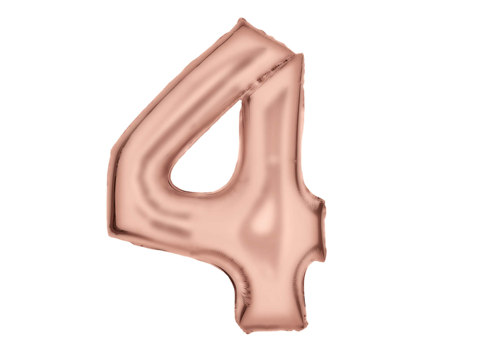 Balon foliowy satynowy cyfra 4 różowe złoto - 86 cm - 1 szt.