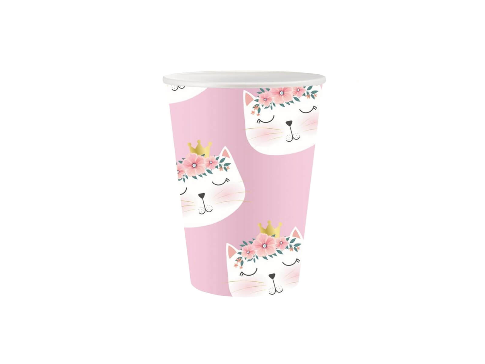 Kubeczki papierowe Kotek różowe - 250 ml - 6 szt.