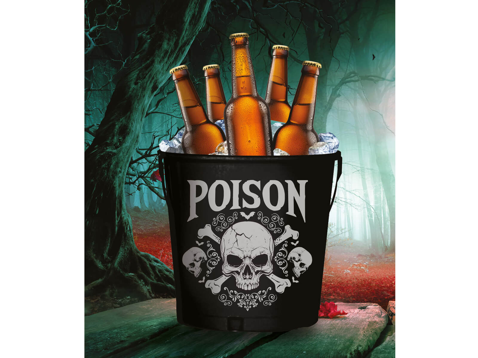 Kubełek ozdobiony jest efektownymi czaszkami oraz tajemniczym napisem "Poison", co dodaje mu charakterystycznego, halloweenowego klimatu. Wykonany z trwałego metalu, będzie służył przez wiele sezonów. Idealnie sprawdzi się jako centralny punkt dekoracji stołu, dodając grozy i oryginalności Twojemu uroczystemu wieczorowi.