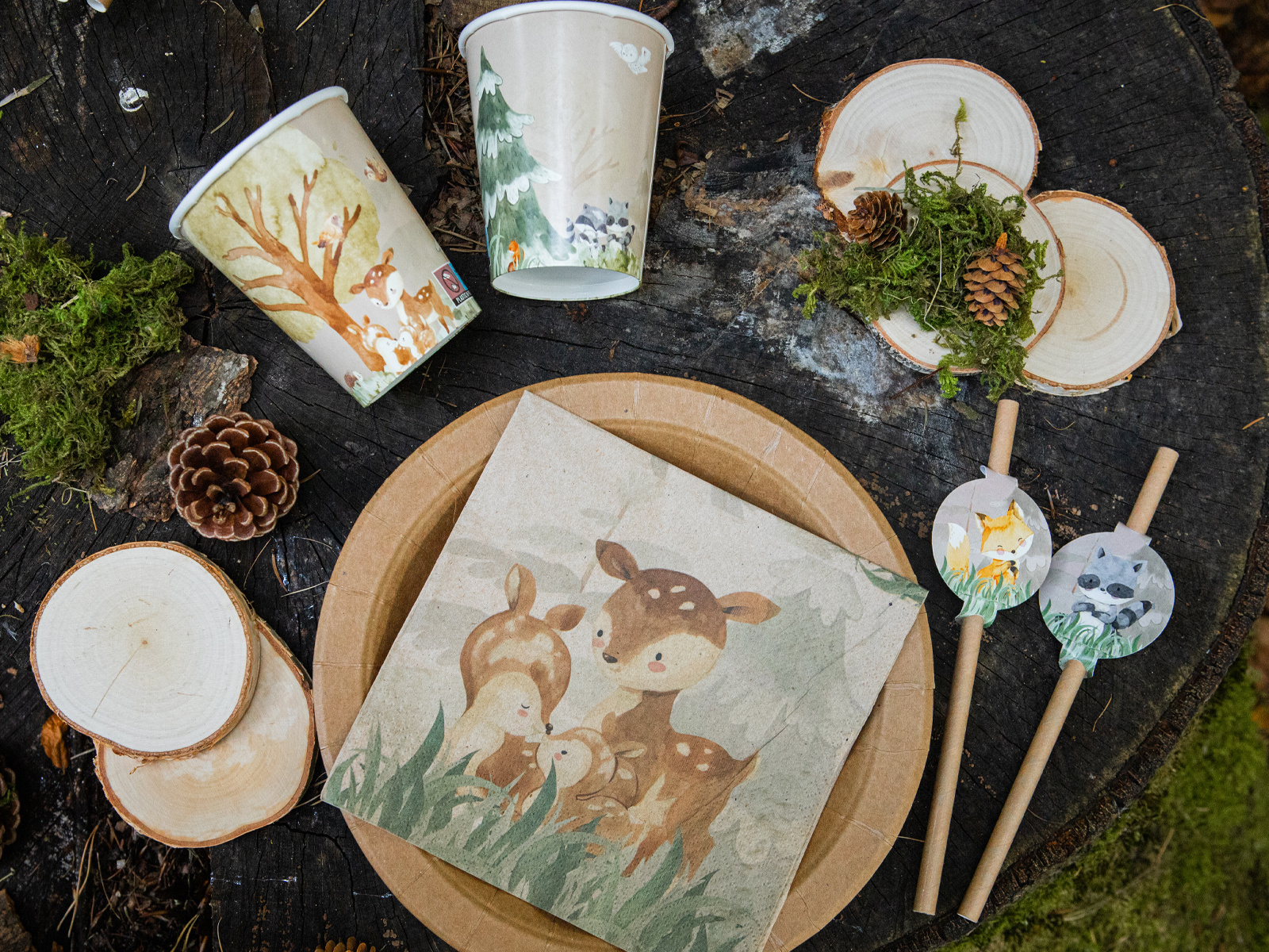 Dzięki tym kolorowym kubeczkom, stół urodzinowy stanie się bardziej kolorowy i radosny, a czystość po imprezie zostanie zachowana dzięki prostej likwidacji jednorazowych naczyń. Idealnie pasują do innych akcesoriów z kolekcji Leśne Zwierzątka, tworząc spójny i urokliwy zestaw na każdą dziecięcą imprezę.