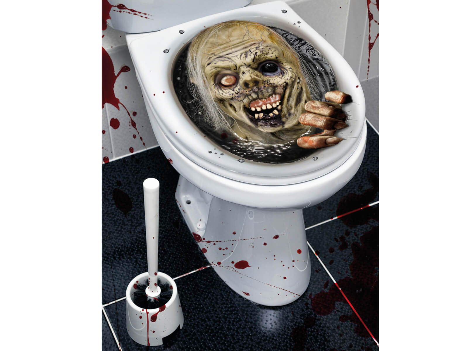 Zaskocz swoich gości niebanalną dekoracją - naklejką na deskę toaletową przedstawiającą przerażającego zombie! Idealna ozdoba do łazienki, która wprowadzi halloweenowy klimat do Twojego domu. Naklejka o wymiarach 30 x 40 cm jest łatwa w aplikacji i usuwaniu, co sprawia, że jest świetnym wyborem na okresowe dekoracje.
