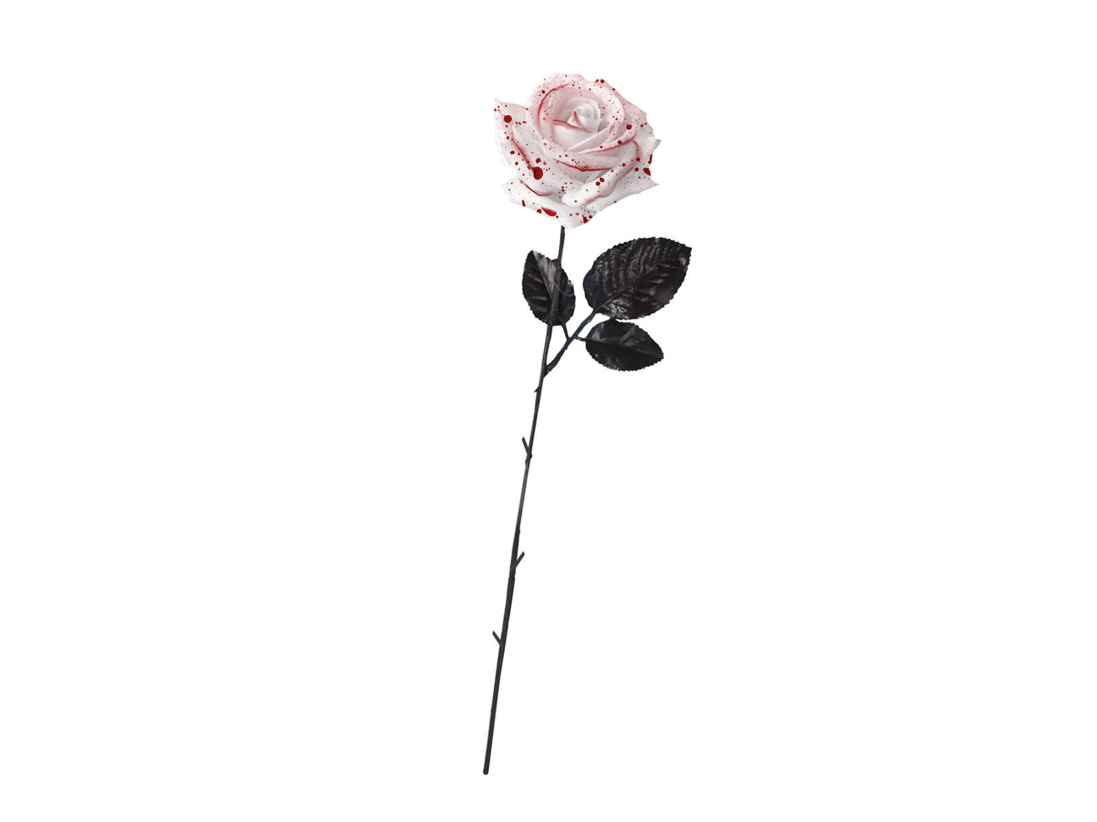 Odkryj niezwykłą dekorację, która doda niesamowitego charakteru Twojej aranżacji na Halloween! Biała róża z krwawymi plamami to idealny element ozdobny, który przyciągnie wzrok każdego gościa. Długość 42 cm pozwala na wykorzystanie jej zarówno jako centralnego elementu dekoracyjnego na stole, jak i części większej, misternie zaprojektowanej instalacji.