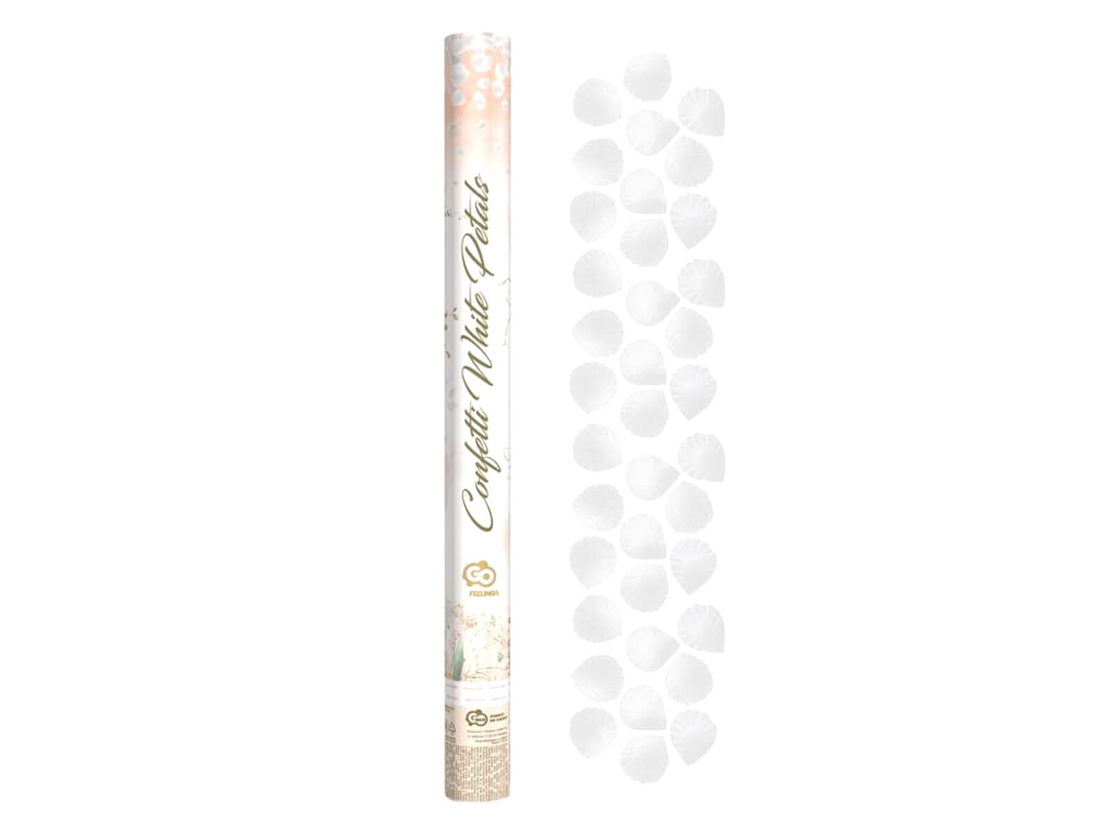 Tuba strzelająca, białe sztuczne płatki róż, 60 cm, 1 szt.