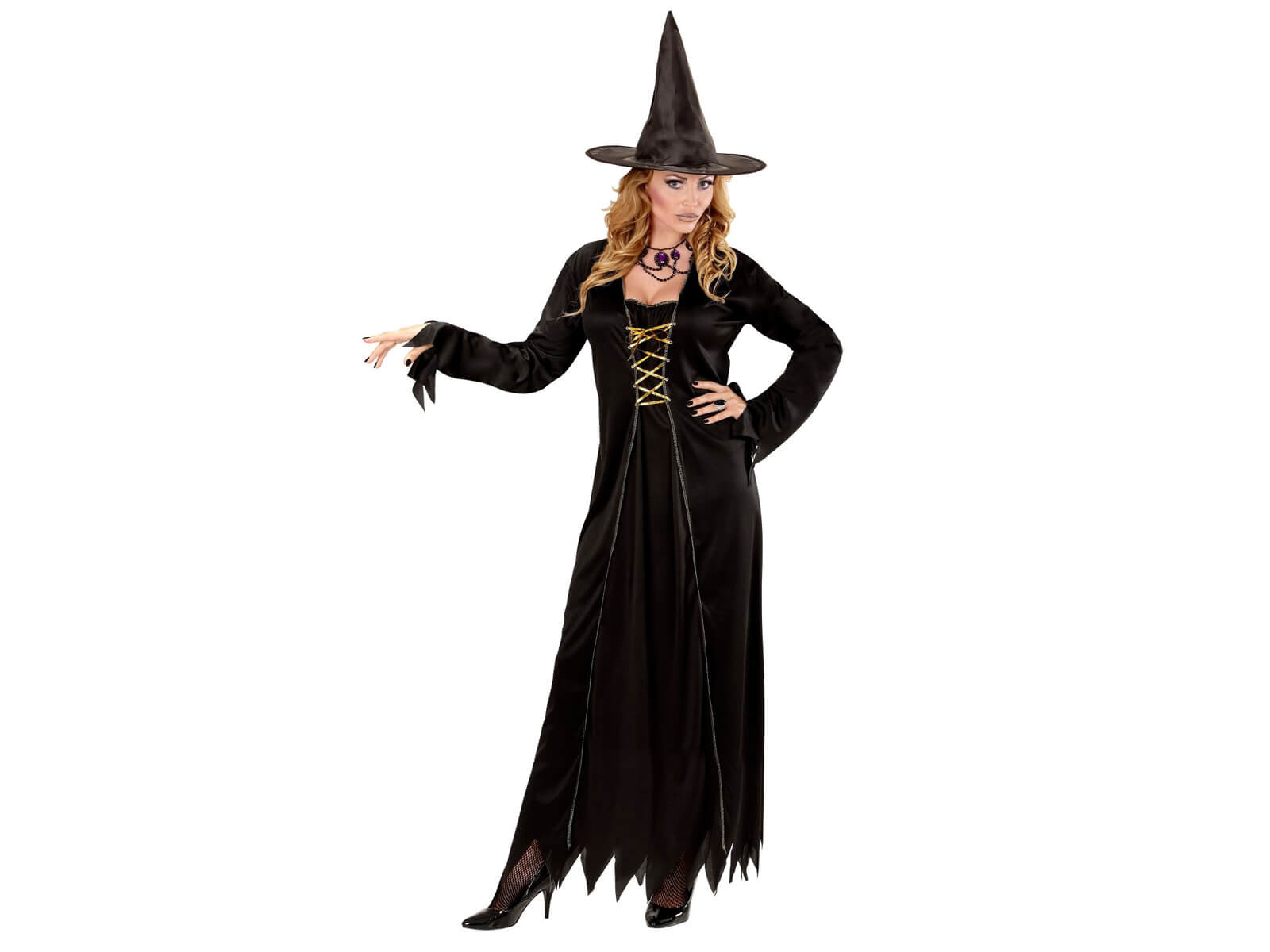 Zaskocz wszystkich niepowtarzalnym przebraniem w nadchodzące Święto Zmarłych. Kostium Czarownica to doskonała propozycja dla kobiet, które chcą w tę magiczną noc poczuć się wyjątkowo. Komplet składa się z eleganckiej sukienki oraz charakterystycznego kapelusza, które razem tworzą niebanalny strój idealny na Halloween, Andrzejki czy nawet karnawał.