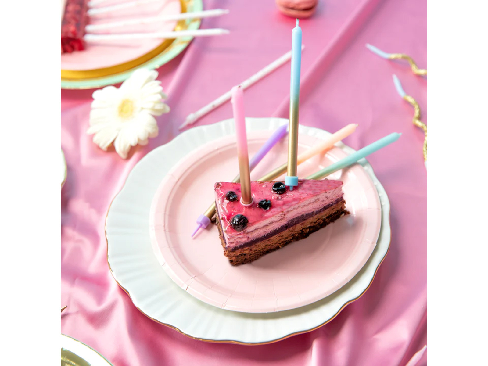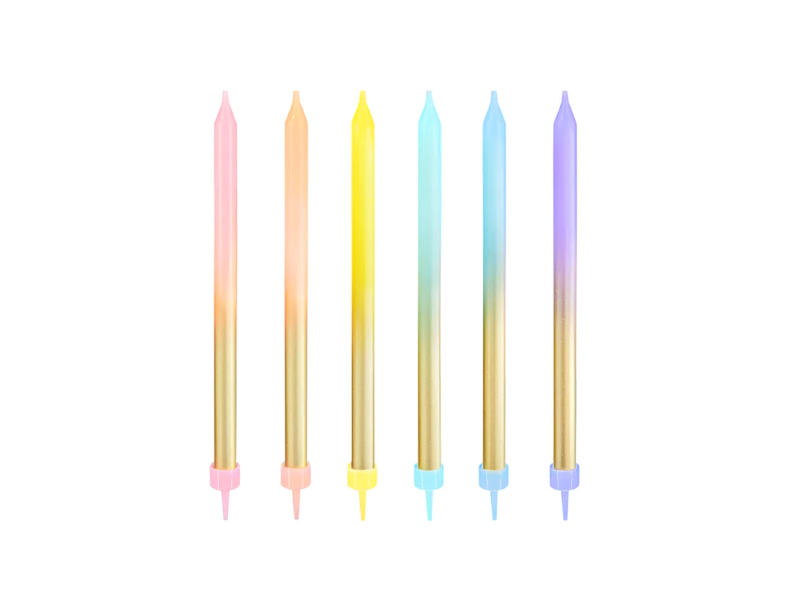 Świeczki urodzinowe złoto-tęczowe - 12,5 cm - 6 szt.