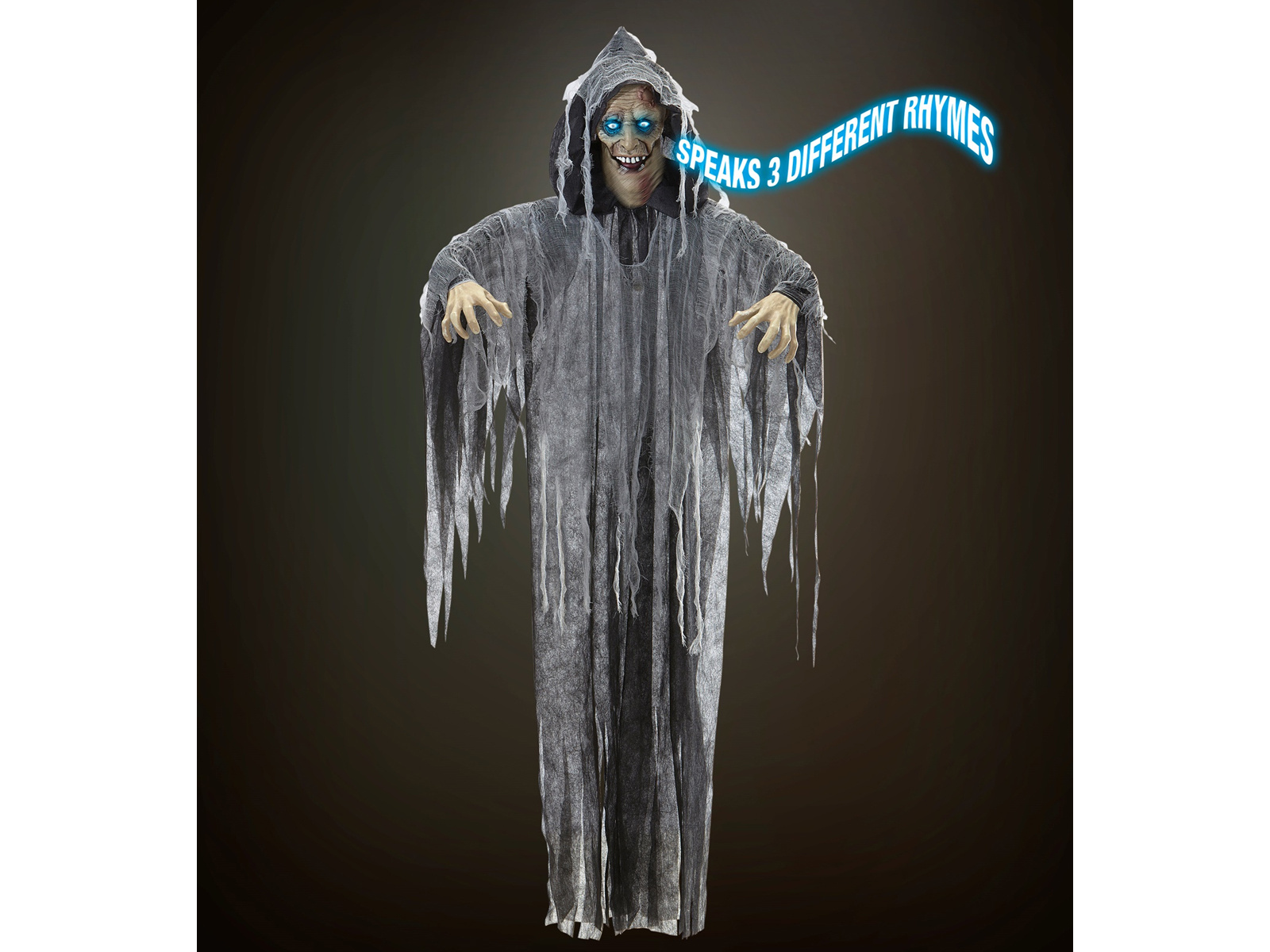 Zombie nie tylko wygląda przerażająco, ale też wzbudza lęk dzięki złowieszczym monologom wydobywającym się z jego wnętrza. Dekoracja jest zasilana na baterie, co pozwala na łatwe umieszczenie jej w dowolnym miejscu, bez potrzeby korzystania z gniazdka elektrycznego.