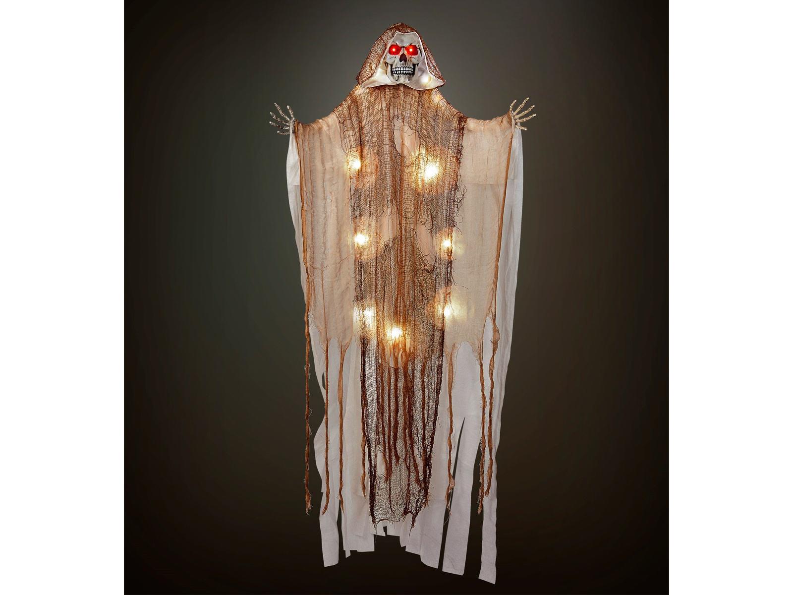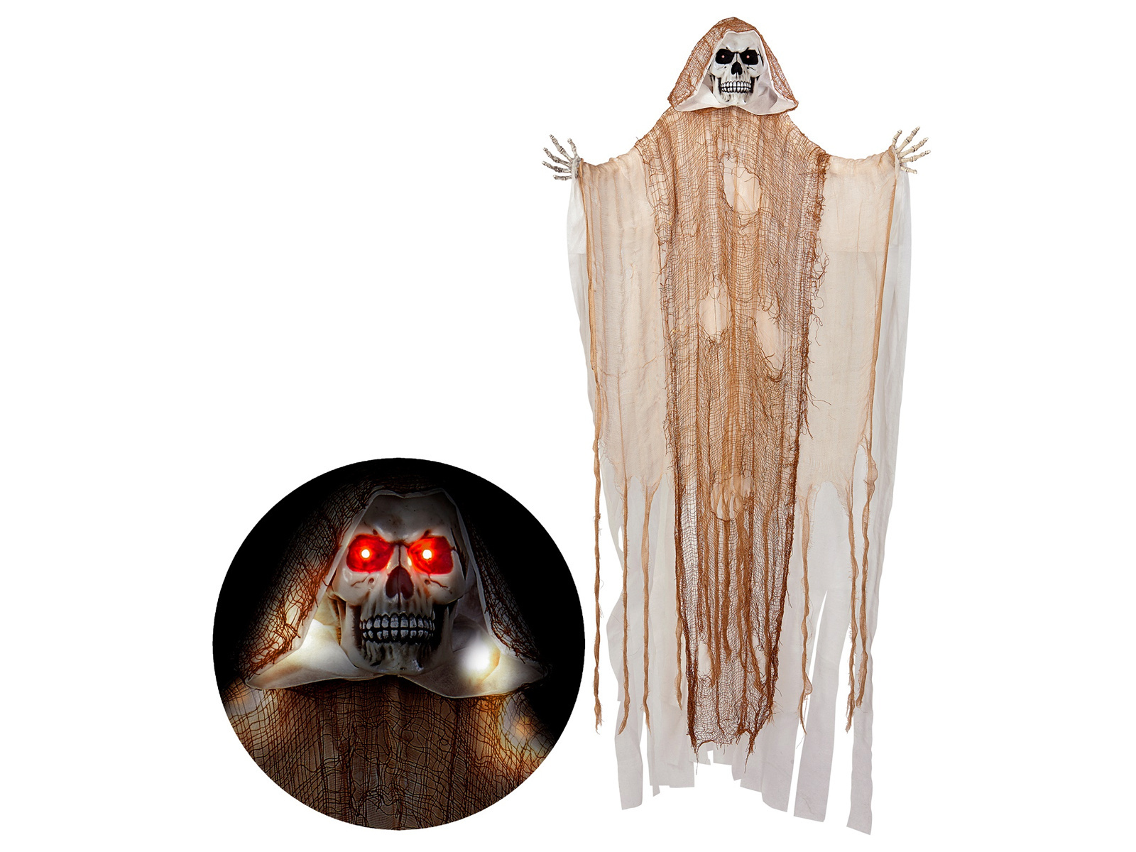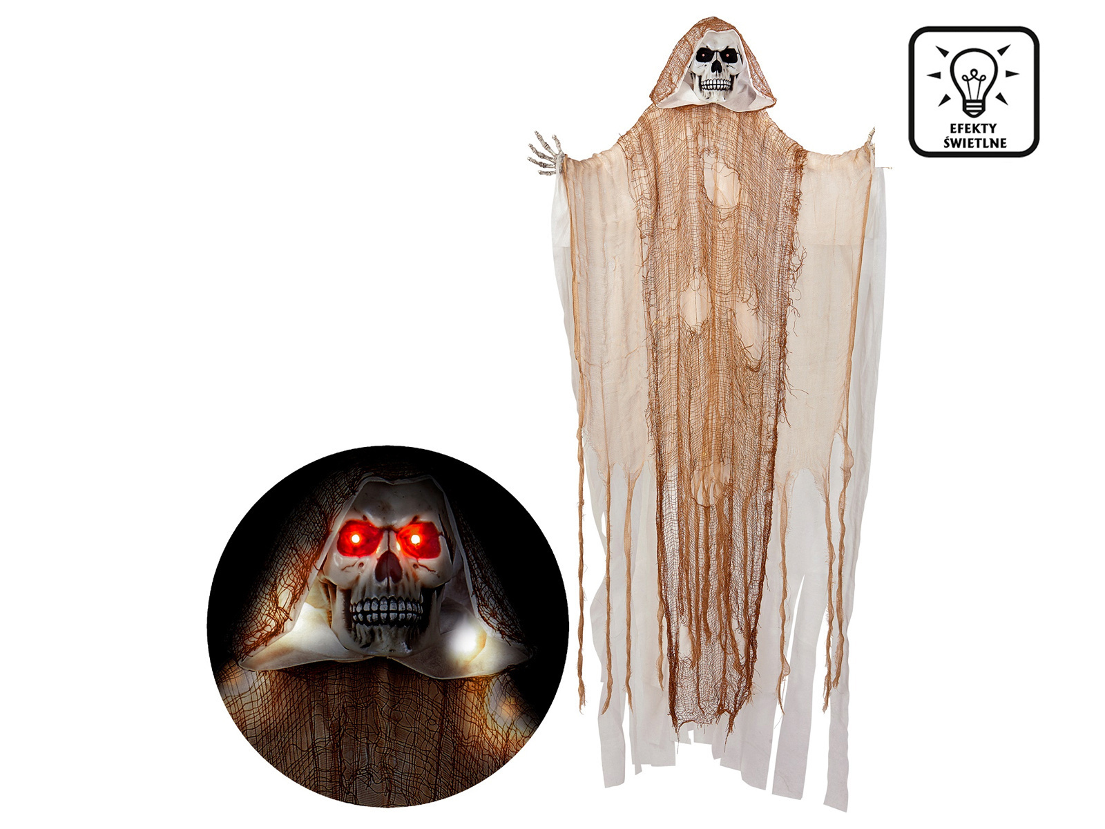Przemień swoje święto Halloween w prawdziwie zjawiskową opowieść z Dekoracją Ponury Żniwiarz. Ten imponujący, wiszący model, mierzący aż 170 cm, stanowi idealne uzupełnienie każdej przestrzeni przeznaczonej na straszne przyjęcie. Ponury Żniwiarz przyciągnie uwagę każdego gościa, a świecące oczy dodają atmosfery tajemniczości oraz grozy.