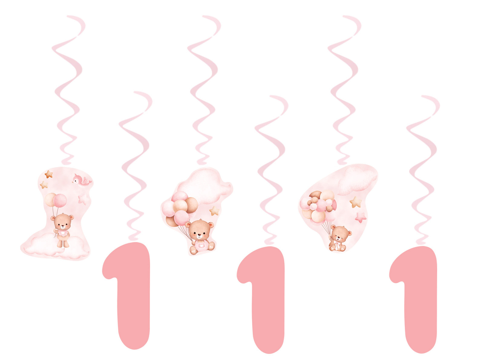 Dekoracja wisząca różowe Misie z balonikami - 6 szt.