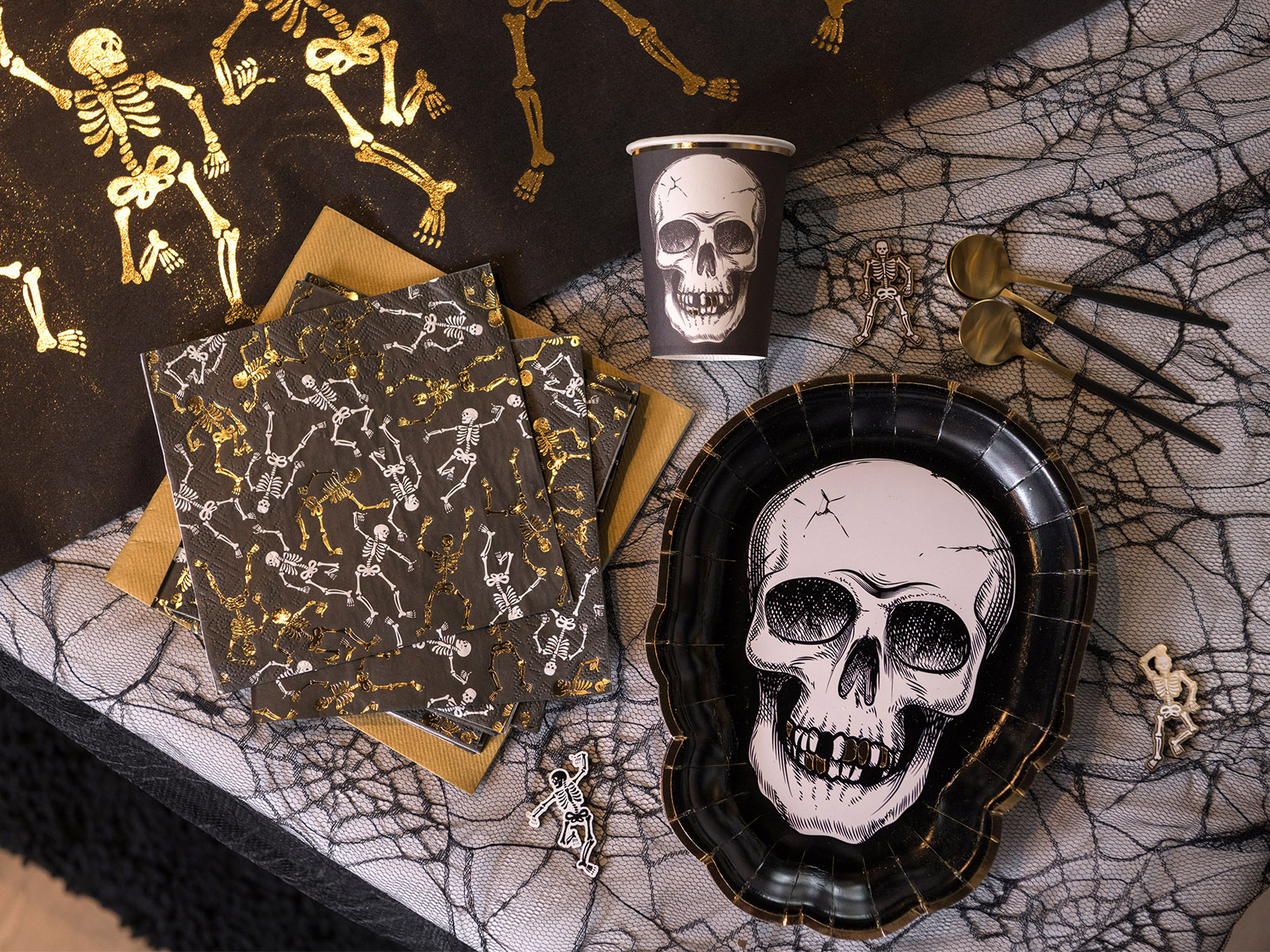Niezbędny element każdej halloweenowej zabawy - papierowe serwetki "Szkielety", które dodały będą straszny akcent Twojemu stołowi. Te trzywarstwowe, wyjątkowo chłonne serwetki doskonale sprawdzą się zarówno podczas rodzinnego przyjęcia jak i większej imprezy ze znajomymi. Nadruk w postaci szkieletów nawiązuje do mrocznego humoru, będąc zarazem efektywną dekoracją.