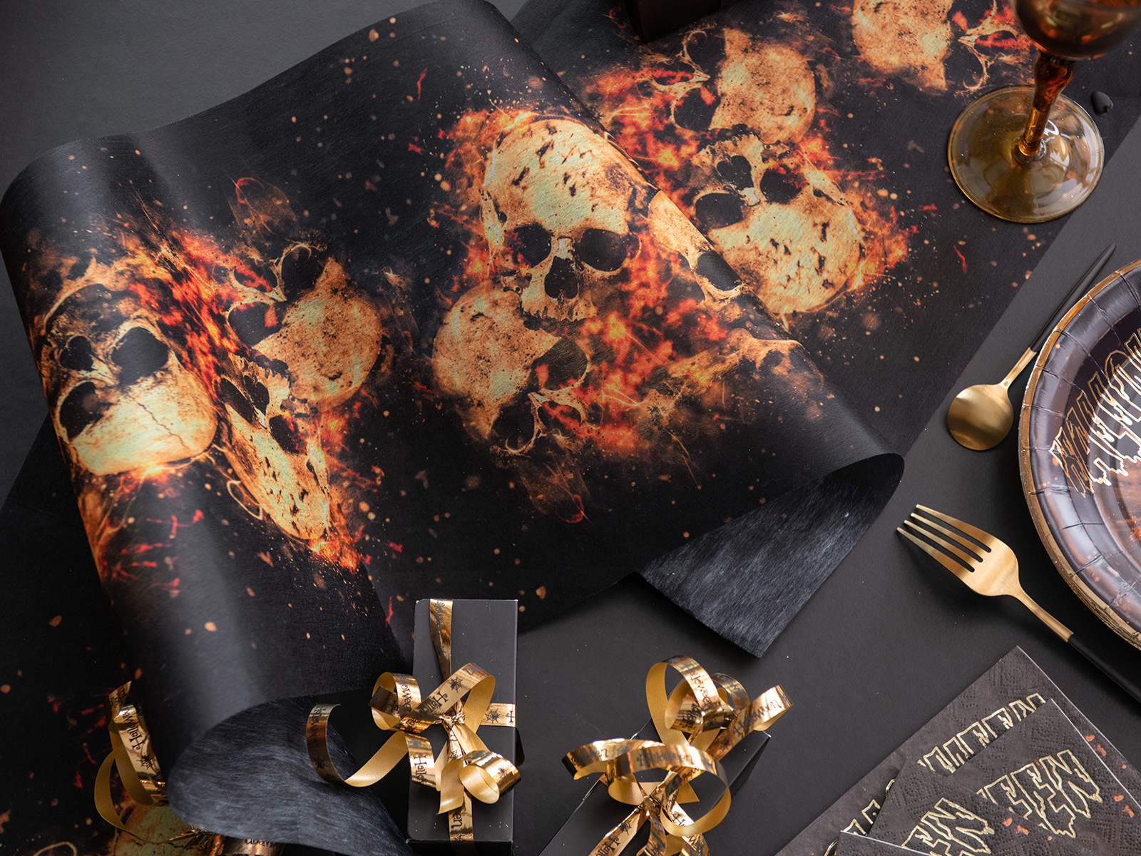 Przygotuj się na noc pełną dreszczy z naszym bieżnikiem halloweenowym Czaszki. Ten unikalny dodatek dekoracyjny, wykonany z włókniny poliestrowej, zapewni atmosferę grozy każdej halloweenowej uczcie. Czarny bieżnik ozdobiony motywem czaszek idealnie komponuje się z tematyką święta duchów i upiorów. Dzięki wymiarom 30 cm szerokości i 5 metrów długości, pasuje na większość stołów. Nie tylko ożywi stół podczas imprezy, ale również może służyć jako sposób na podkreślenie halloweenowego ciemnego wystroju pokoju czy salonu. Przemień swoje wnętrze w mroczny zaułek – gwarancja niezapomnianych wspomnień i przerażenia gości!