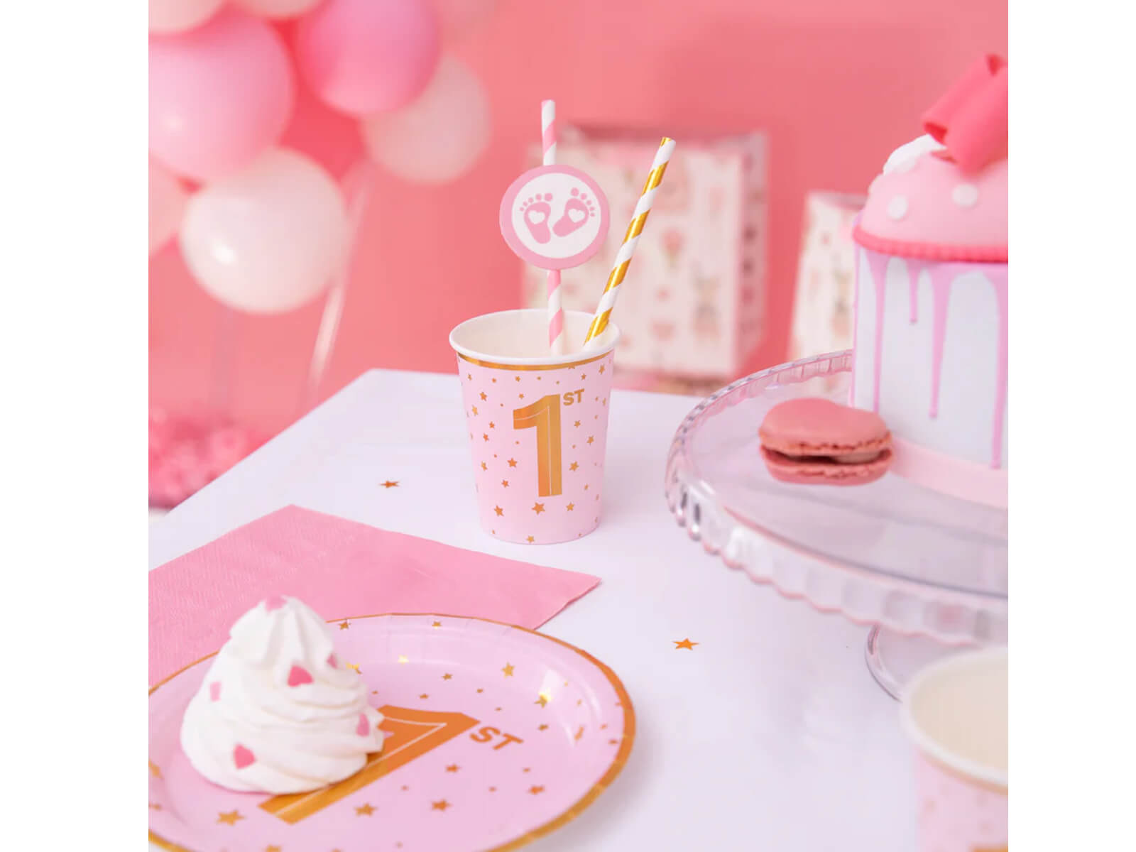 Kubeczki papierowe na roczek różowe - 220 ml - 6 szt.