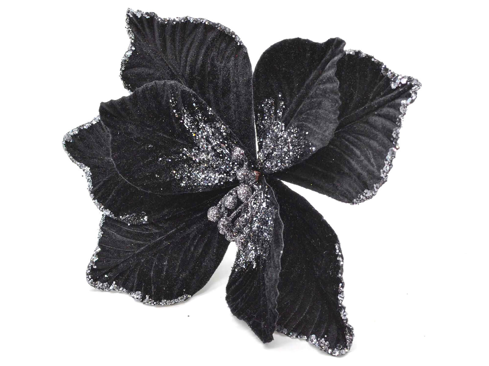 Dekoracja Gwiazda Betlejemska na piku czarna z brokatem - 25 cm - 1 szt.