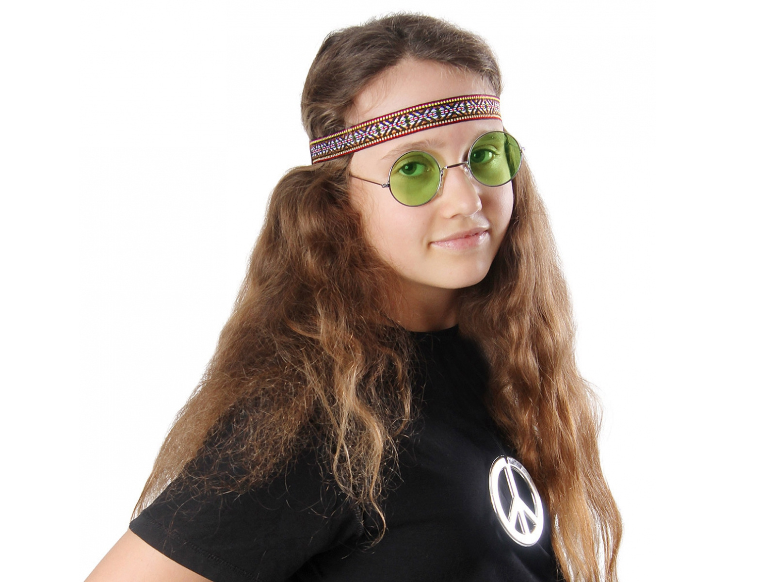 - Okulary hippie: Z okrągłymi szkłami i charakterystycznym wzorem, które dopełnią Twój look.