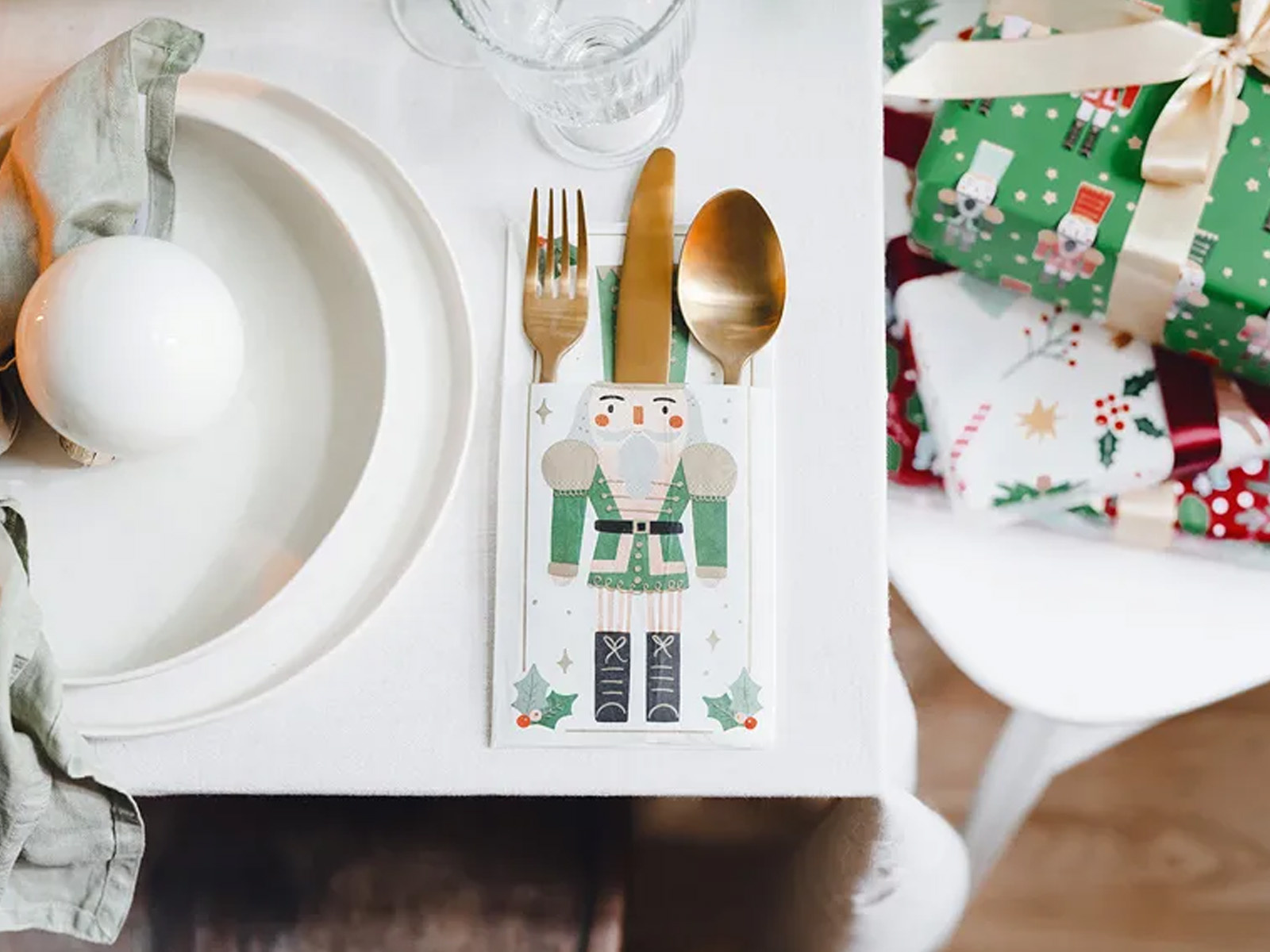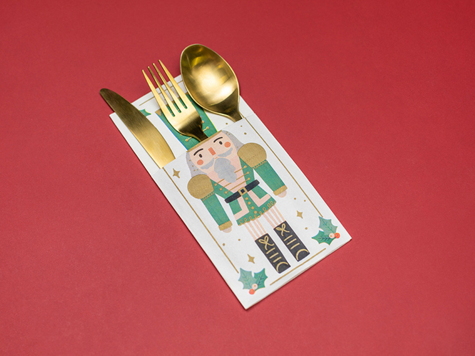 Papierowe kieszonki na sztućce "Dziadek do orzechów" - 6 sztuk