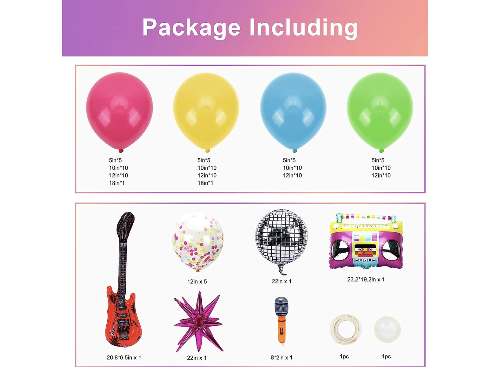 - pastelowe różowe 46 cm (1 szt.); 30 cm (10 szt.); 25 cm (10 szt.); 13 cm (5 szt.),