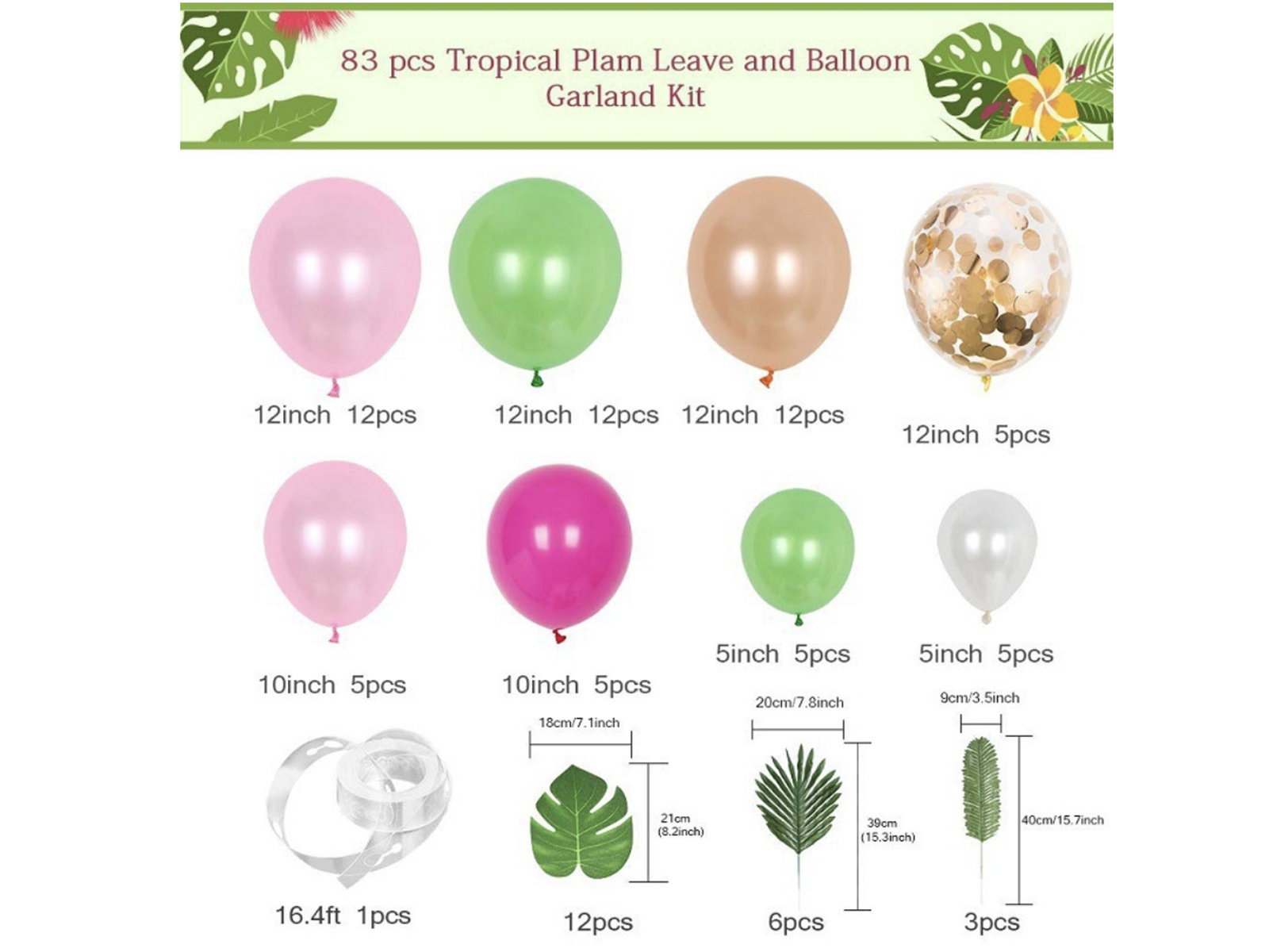 Zestaw balonów do girlandy balonowej hawajski - 83 szt.