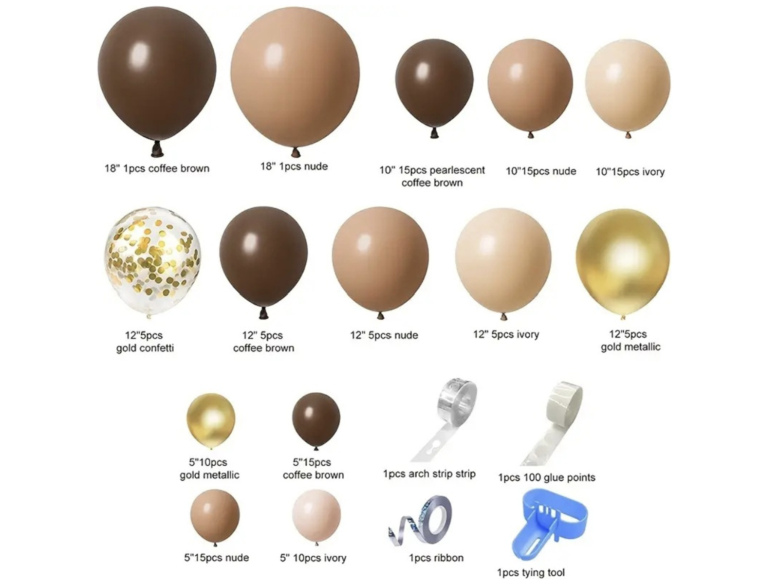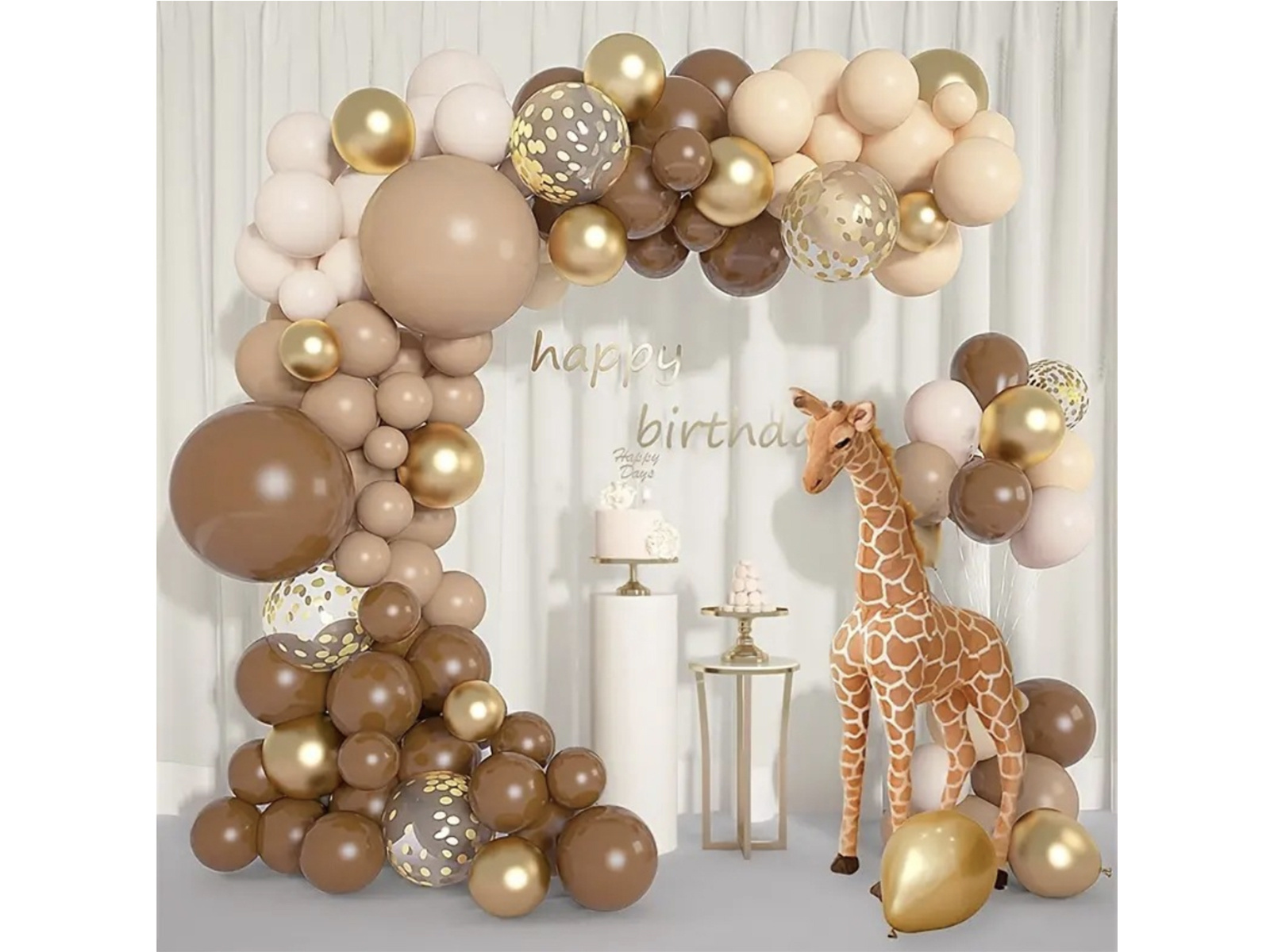Zestaw balonów do girlandy balonowej brązowo-złoty - 122 szt.