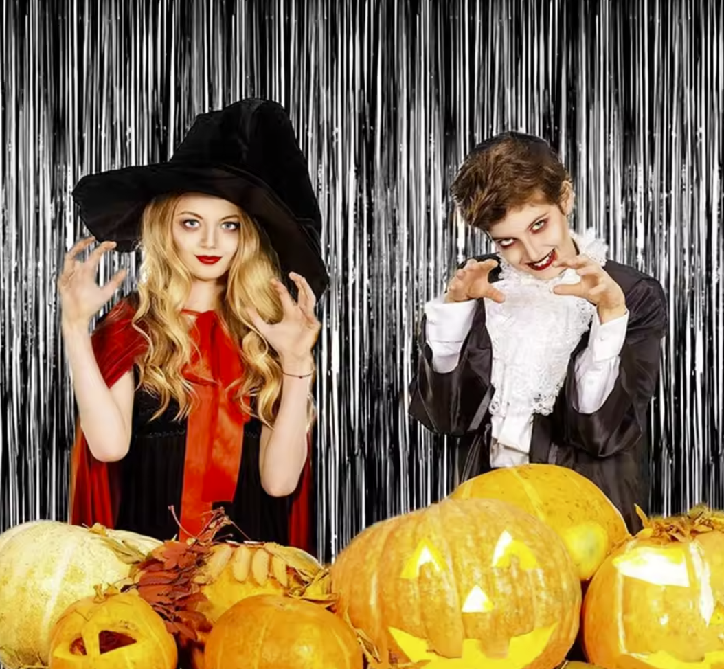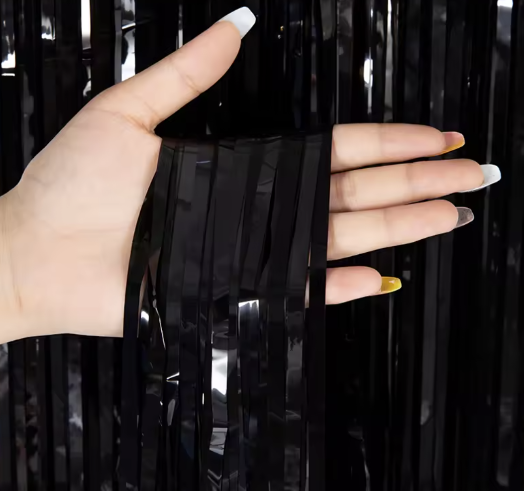 Przekształć swoje wnętrze w elegancką i tajemniczą przestrzeń dzięki naszej zasłonie na drzwi o wymiarach 100 cm szerokości i 250 cm wysokości. Idealna jako dekoracja na różnego rodzaju okazje specjalne, takie jak Sylwester, Karnawał czy Walentynki. Zasłona wykonana z metalicznej folii w intensywnym czarnym kolorze, dodaje wyrafinowanego charakteru każdemu pomieszczeniu.