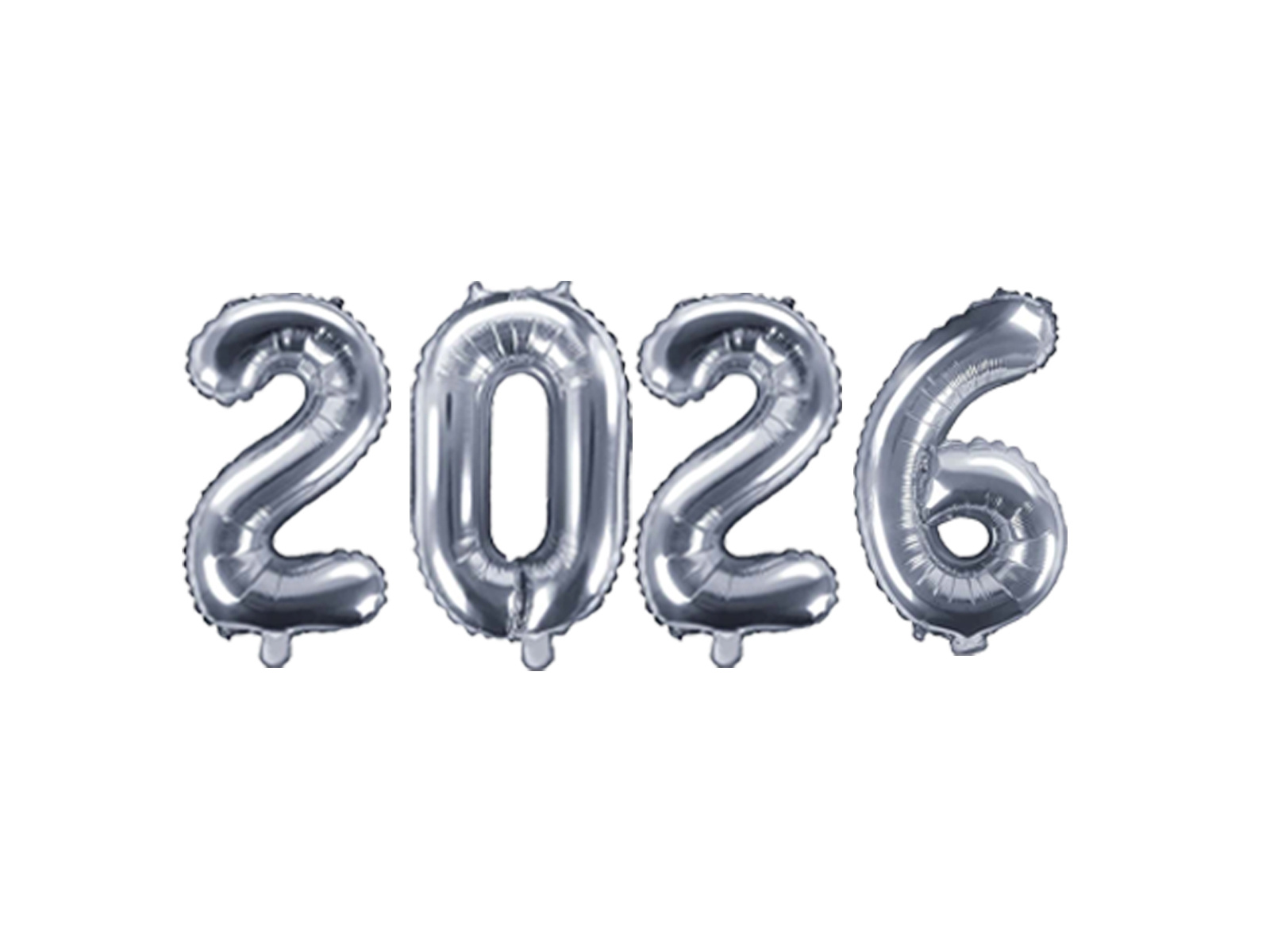 - balony cyfry srebrne 2026 wys. 35 cm,