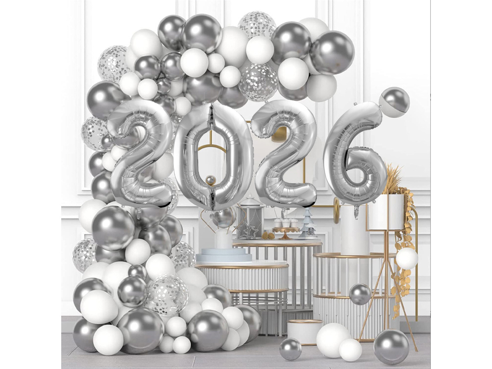 Przywitaj Nowy Rok 2026 w stylu z naszym ekskluzywnym zestawem balonów, który doda eleganckiego akcentu każdej sylwestrowej nocy. W skład zestawu wchodzi 106 sztuk balonów w klasycznych, srebrnych i białych kolorach, co sprawia, że są idealnym wyborem na ściankę do zdjęć lub jako główną dekorację. Balony lateksowe wchodzące w skład zestawu są trwałe i elastyczne, gwarantując, że udekorowanie Twojego wnętrza na ten wyjątkowy wieczór będzie prostsze niż kiedykolwiek.