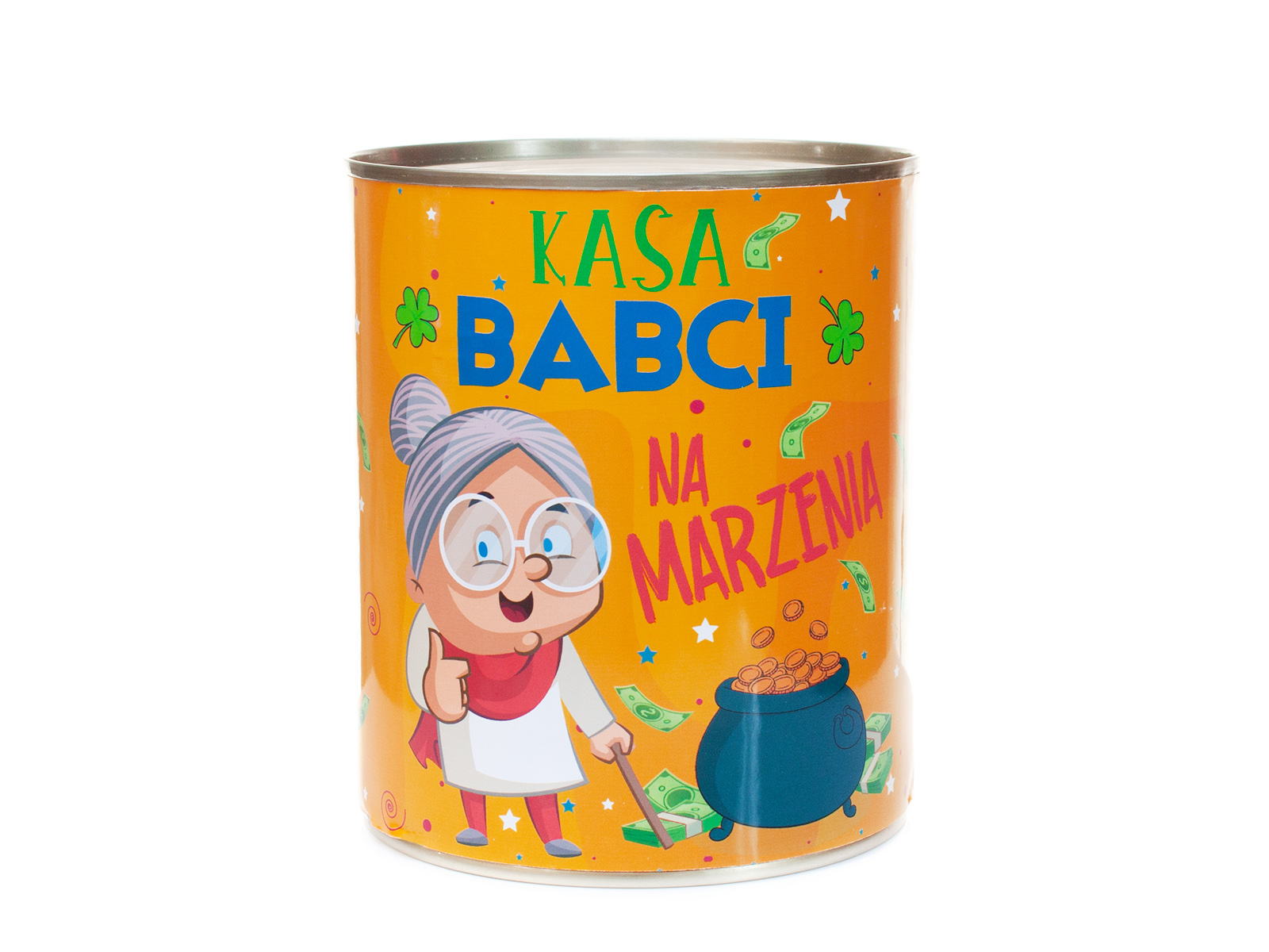 Skarbonka metalowa z napisem Kasa BABCI na marzenia