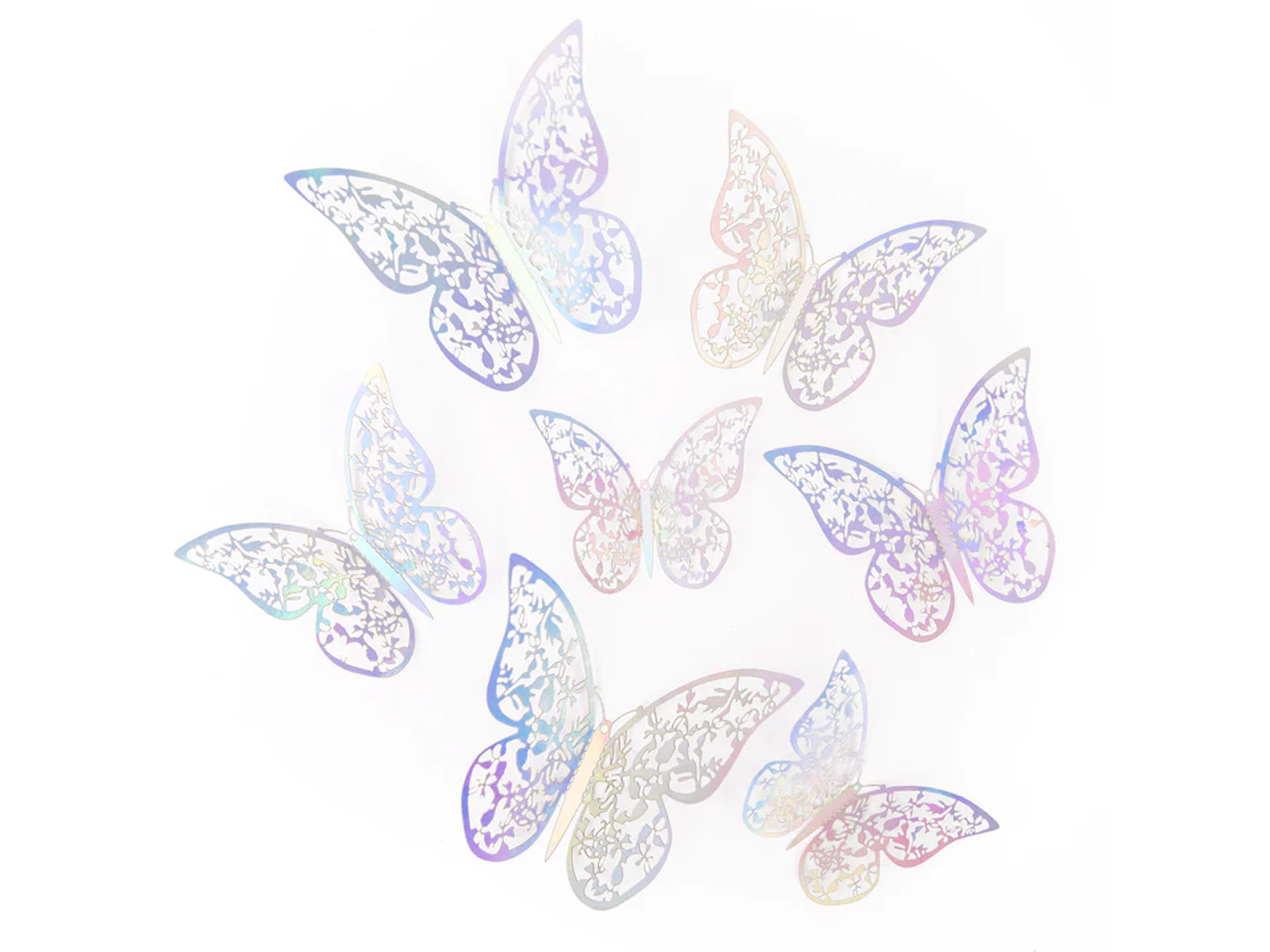 Naklejki motylki koronkowe holograficzne srebrne - 12 szt.