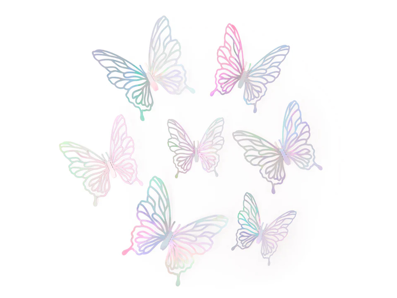 Naklejki motylki ażurowe holograficzne srebrne - 12 szt.