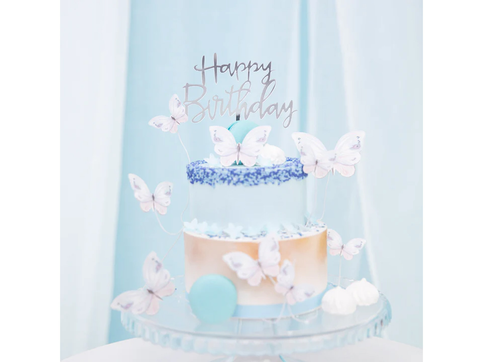 Topper na tort Happy Birthday srebrny - 1 szt.